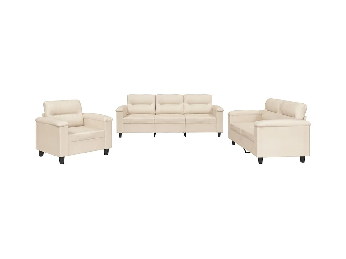 Ensemble de canapés 3 pièces avec coussins beige tissu microfibre
