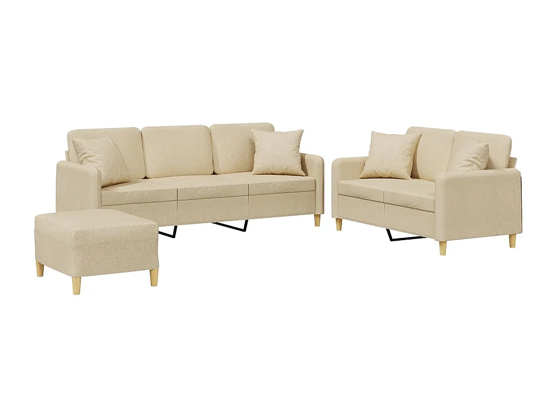 Ensemble de canapés 3 pièces avec coussins crème tissu