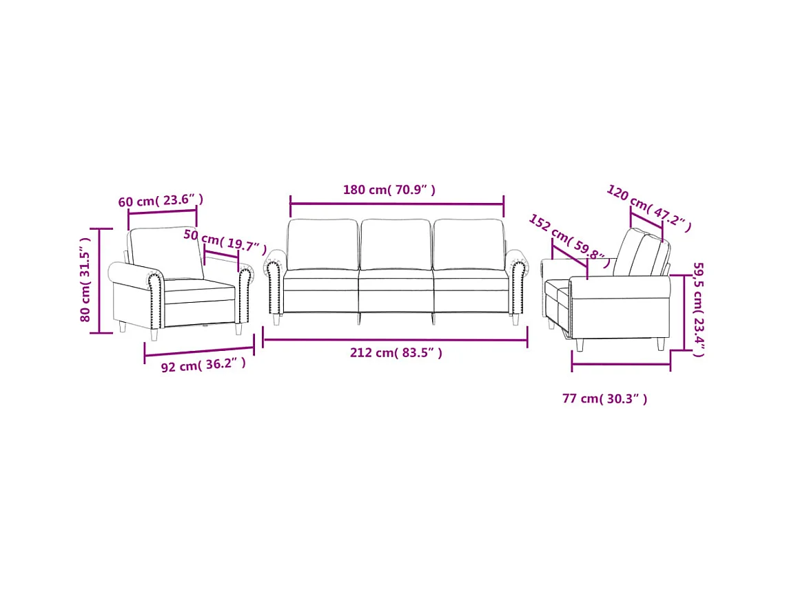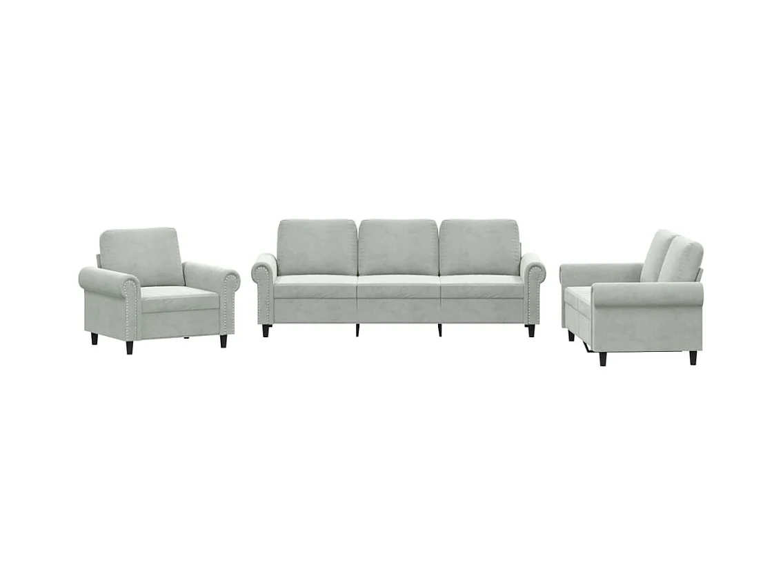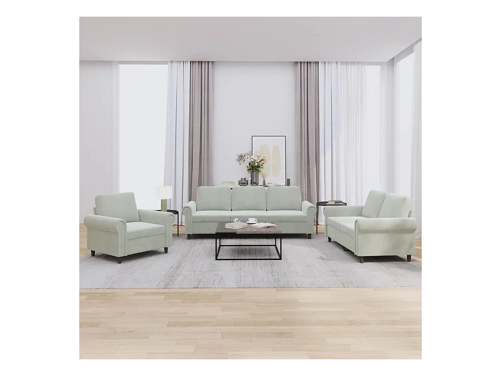 Ensemble de canapés 3 pièces avec coussins Gris clair Velours