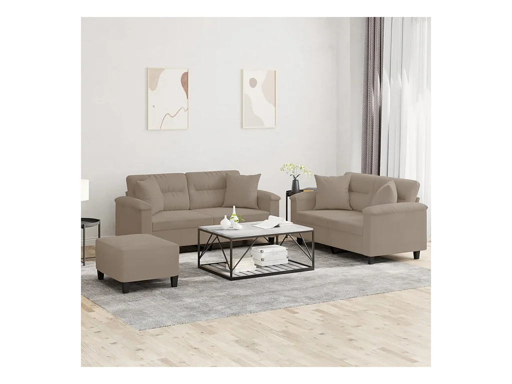 Ensemble de canapés 3 pièces avec coussins Taupe Tissu microfibre
