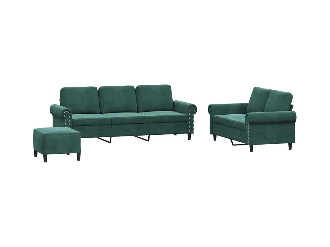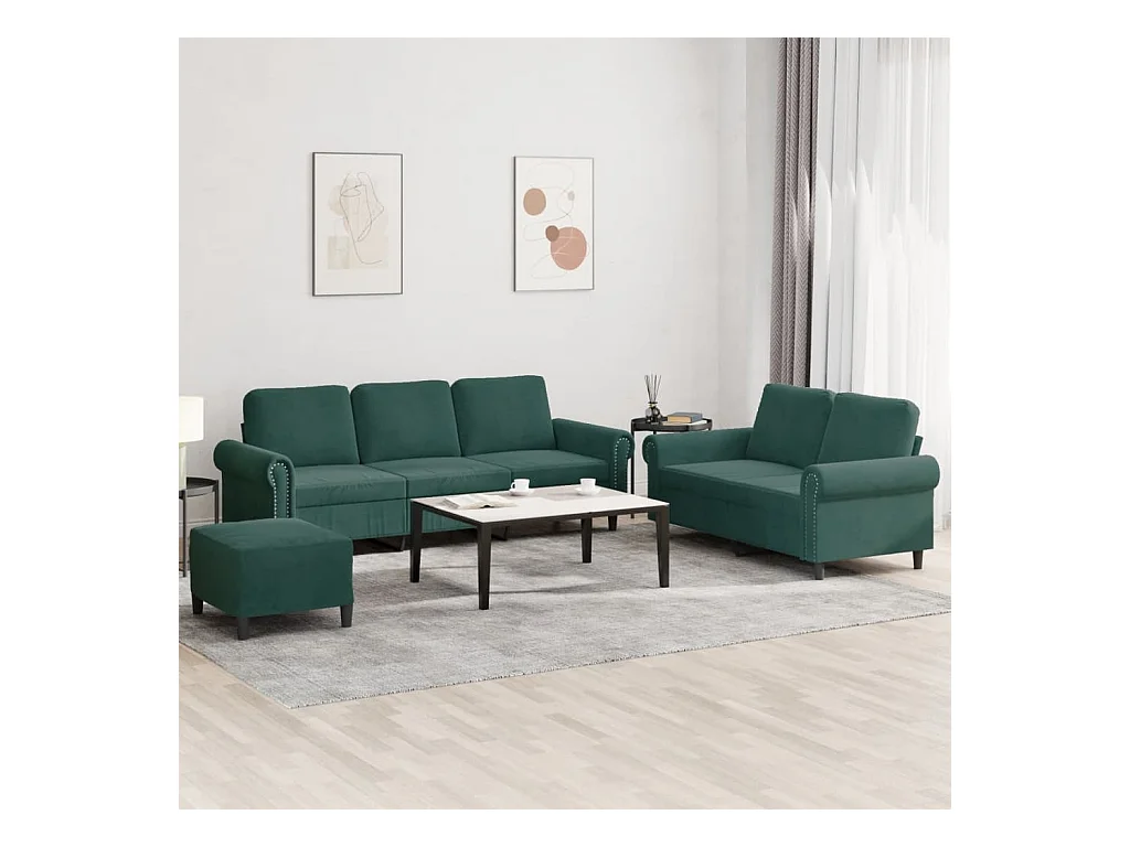 Ensemble de canapés 3 pièces avec coussins Vert foncé Velours