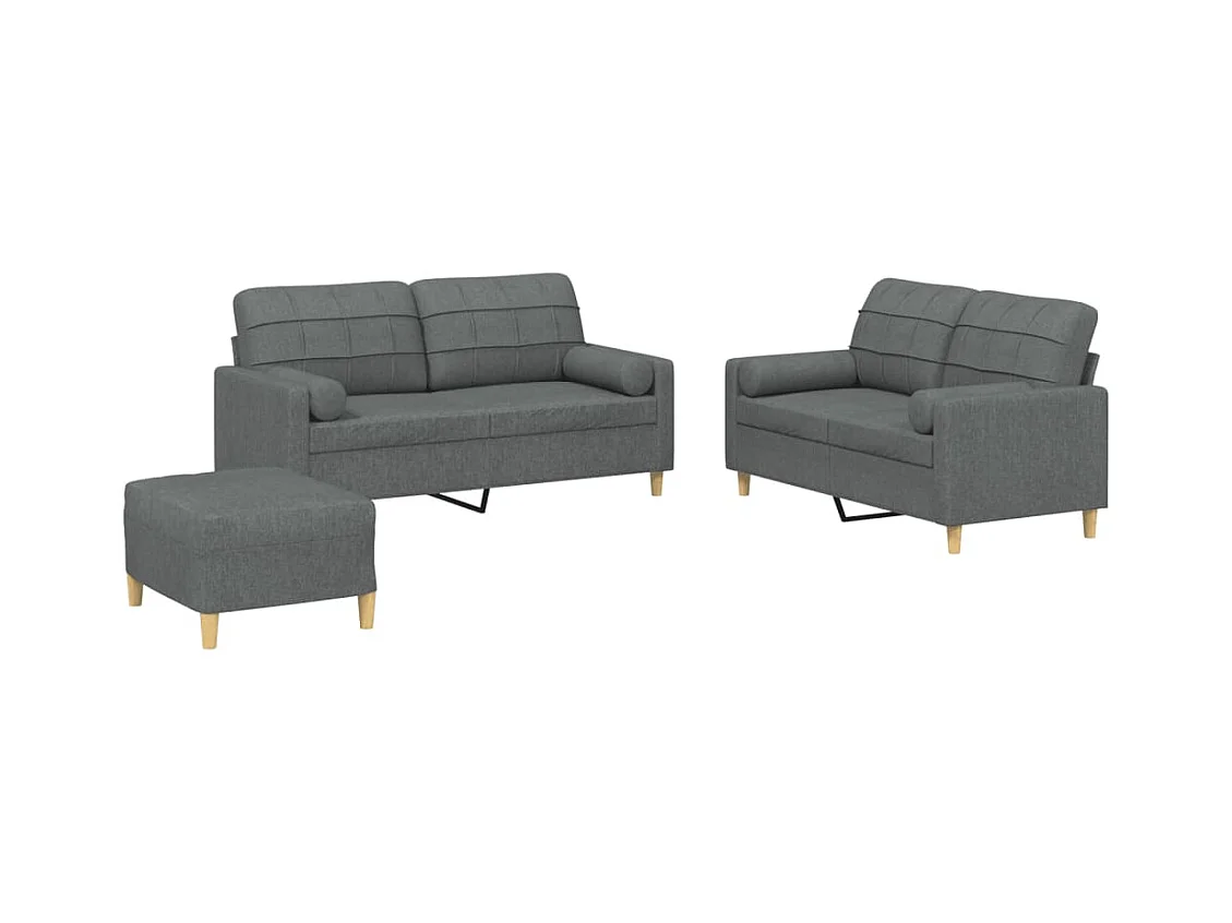 Ensemble de canapés 3 pièces coussins gris foncé tissu