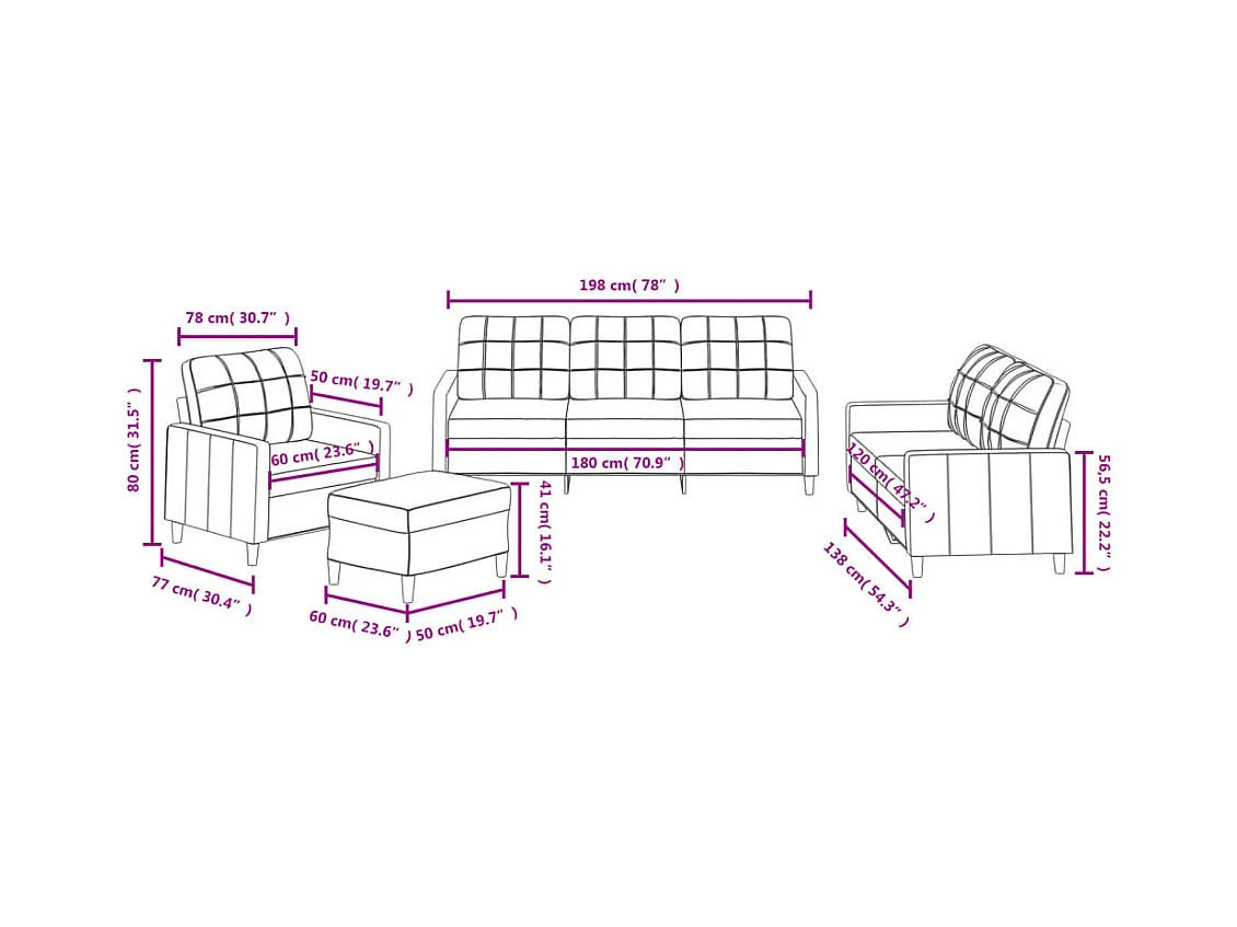 Ensemble de canapés 4 pcs avec coussins Crème Tissu