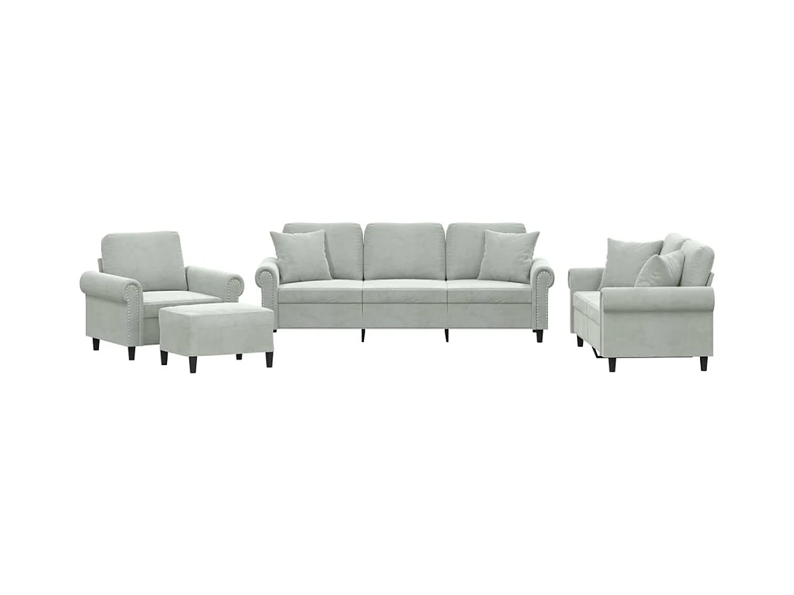 Ensemble de canapés 4 pcs avec coussins gris clair velours