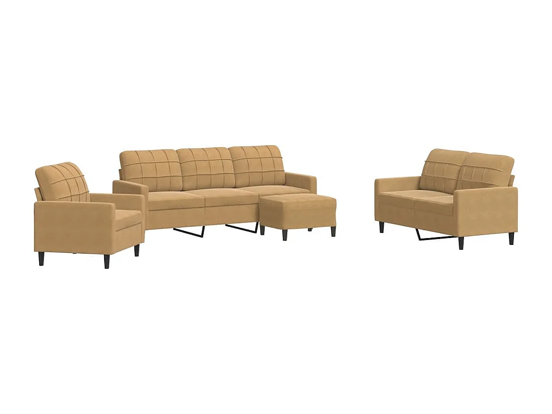 Ensemble de canapés 4 pcs avec coussins Marron Velours