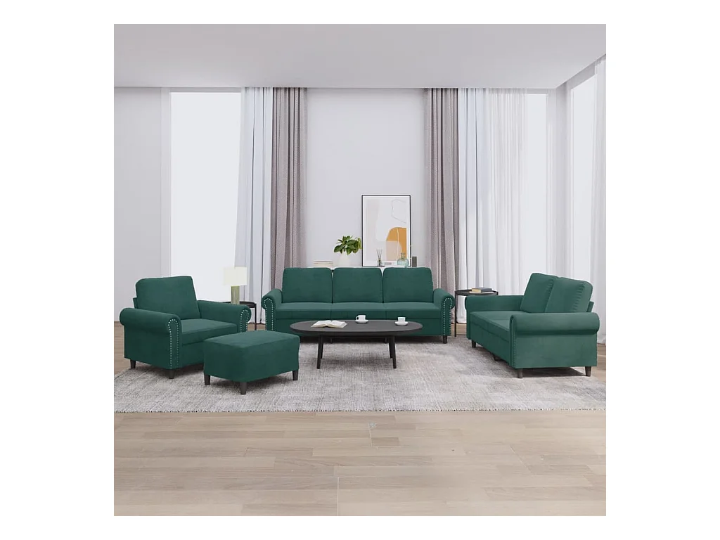 Ensemble de canapés 4 pièces avec coussins Vert foncé Velours
