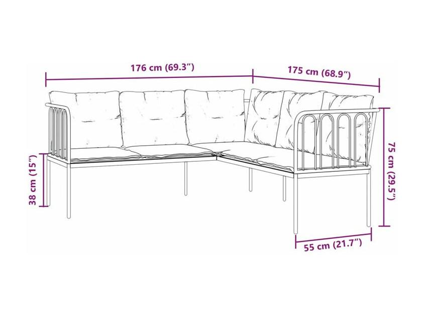 Ensemble de canapés de jardin et coussins noir acier textilène