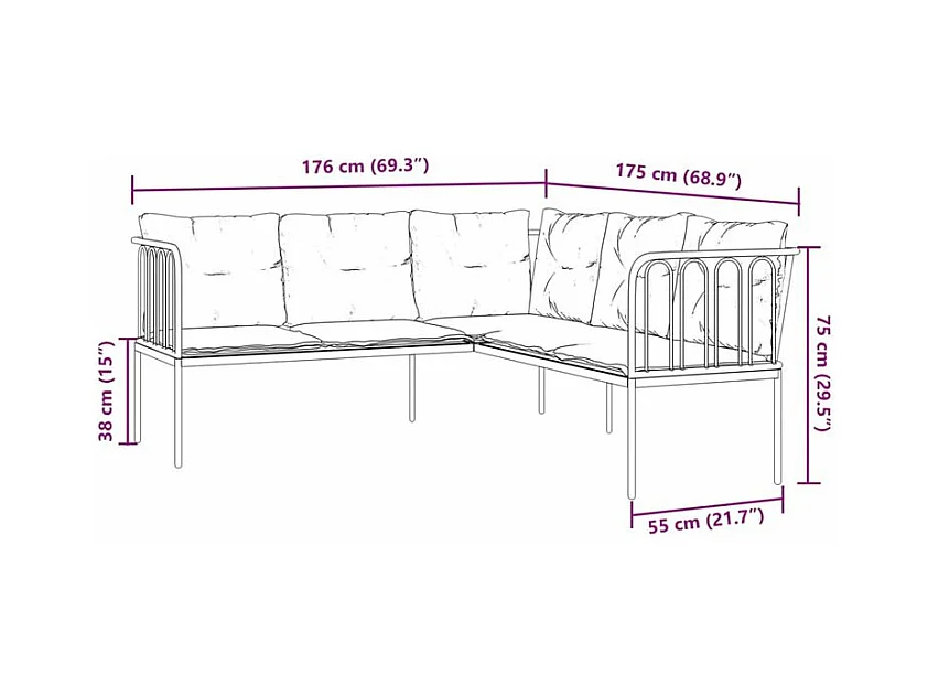 Ensemble de canapés de jardin et coussins noir acier textilène