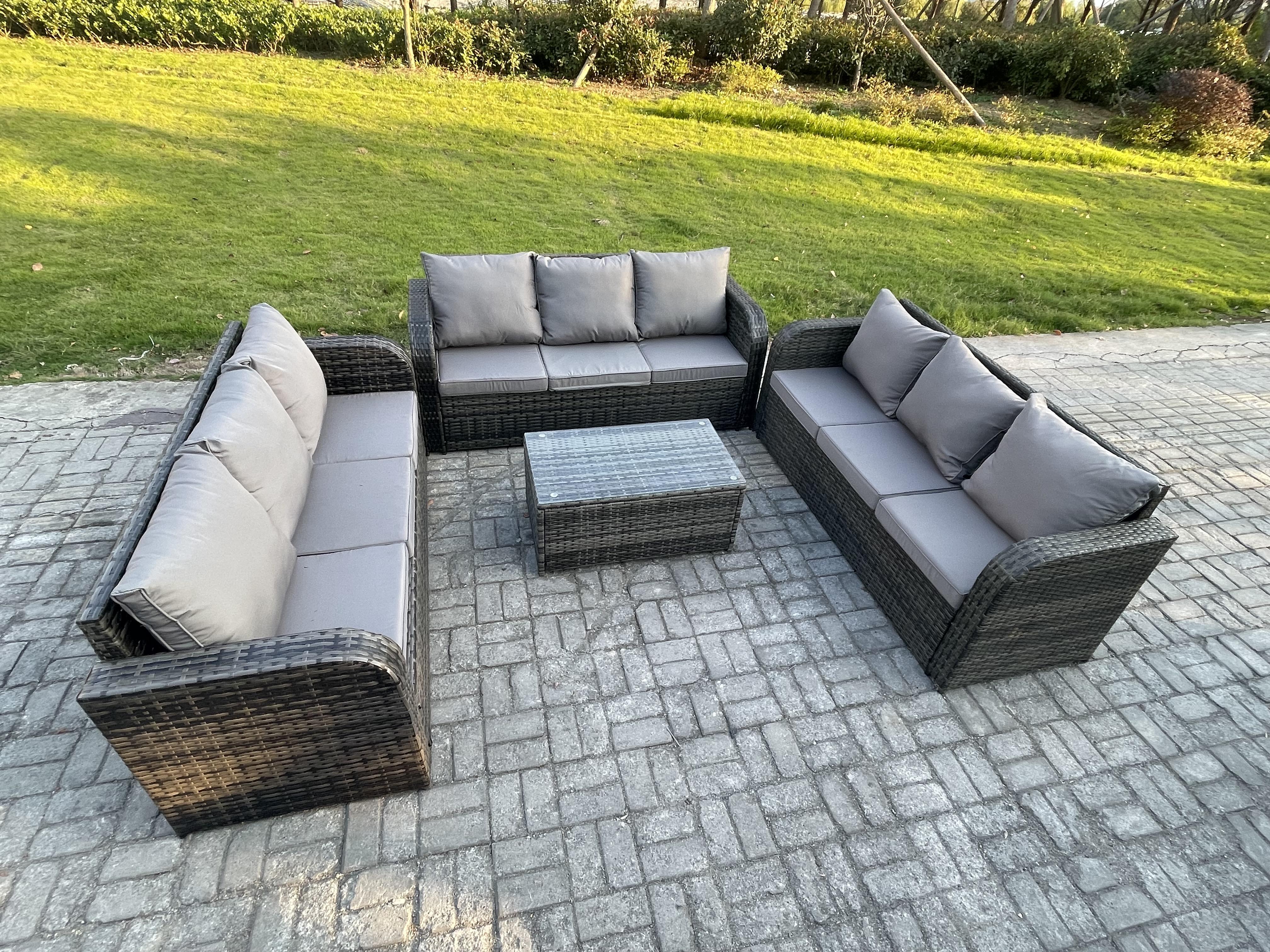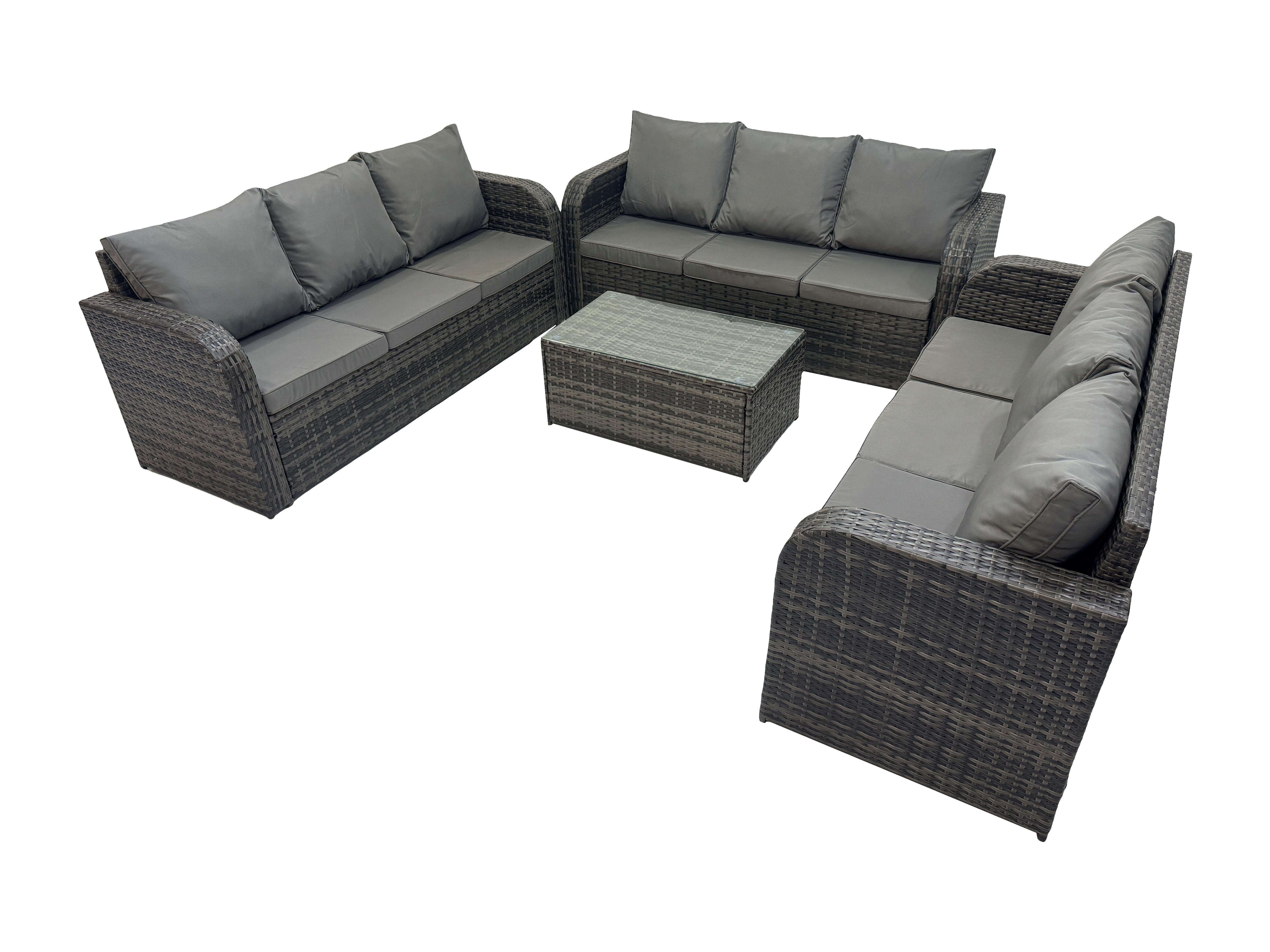 Ensemble de canapés en rotin 9 places salon de jardin avec Table basse rectangulaire Canapé 3 places Gris foncé mixte