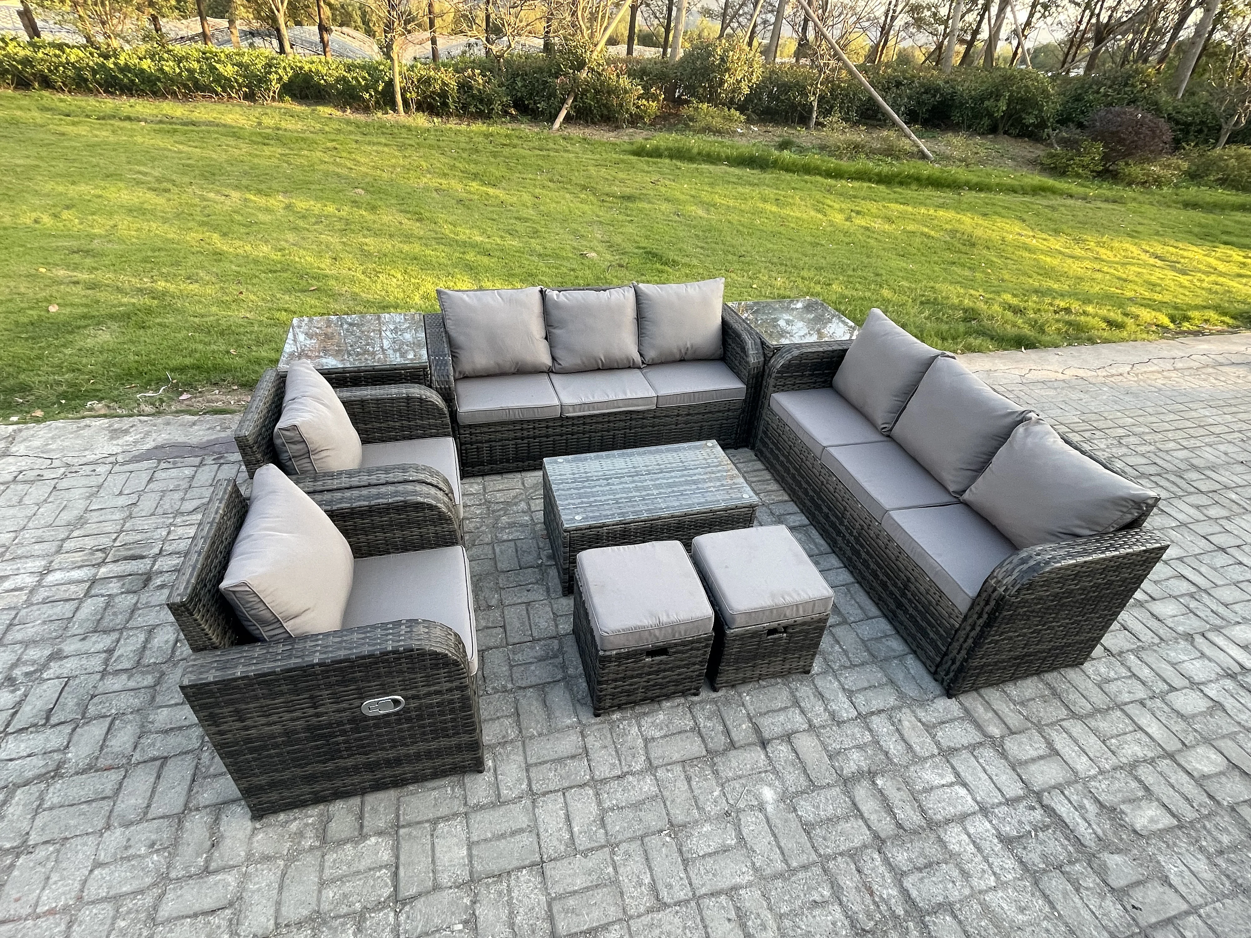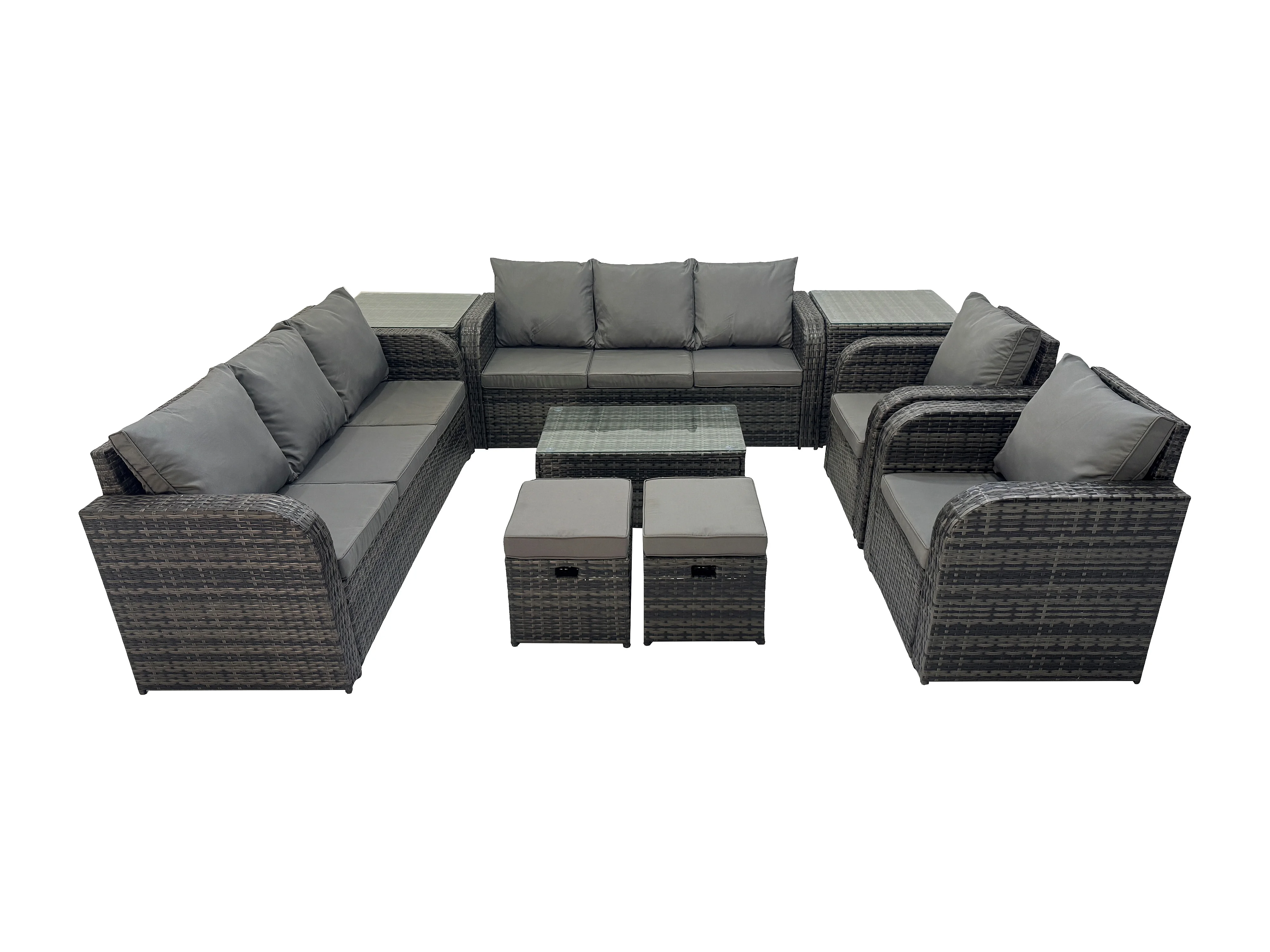 Ensemble de canapés en rotin avec Canapé 3 places Chaise inclinable 2 Petits tabourets Canapé 3 places 2 Tables d'appoint Gris foncé mixte