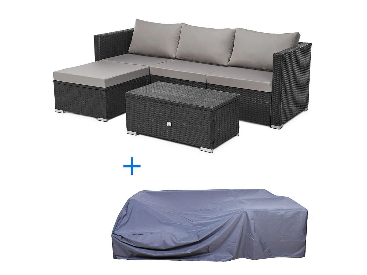 Ensemble de canapés en rotin synthétique QUEENS en noir avec housse