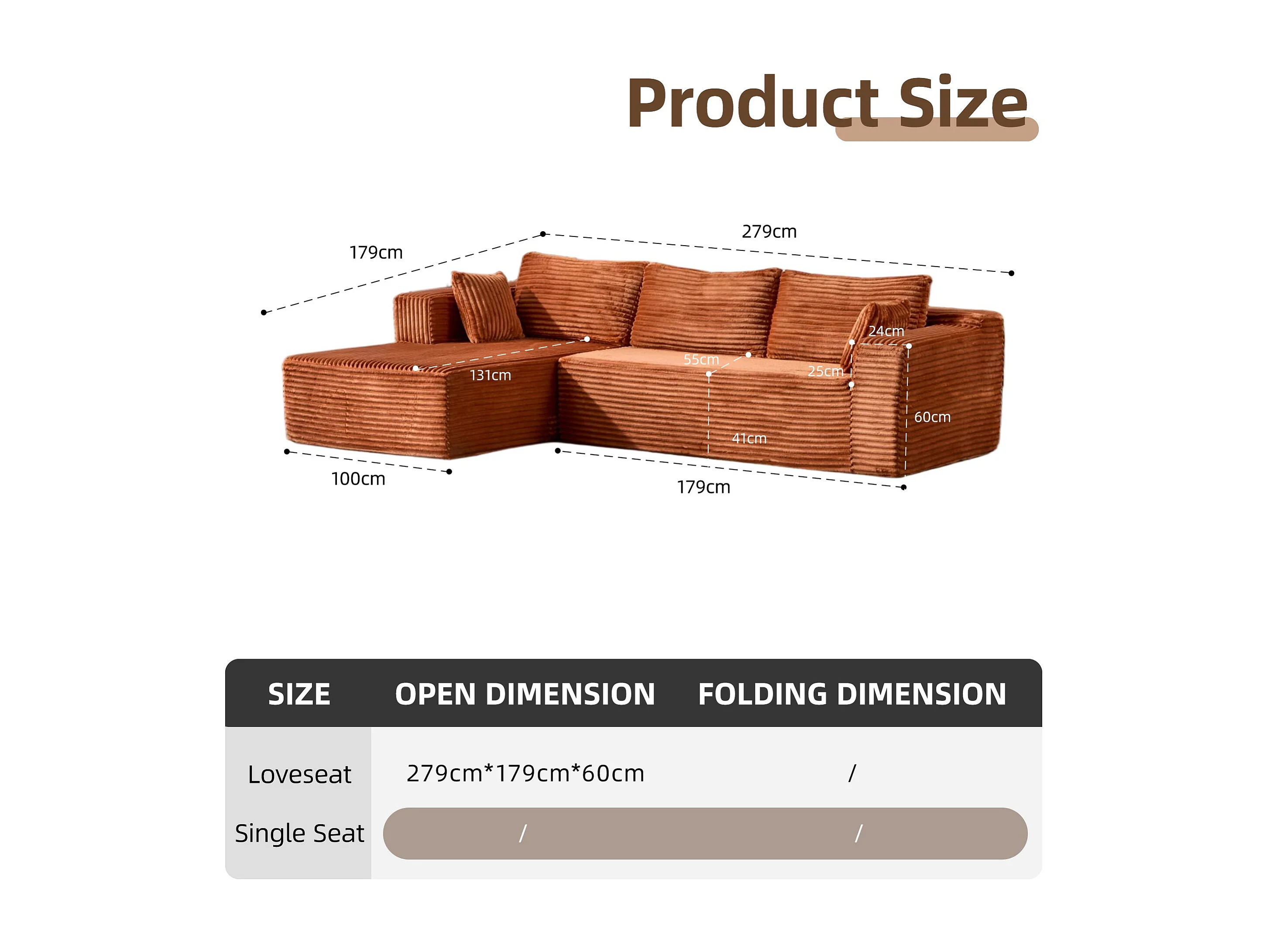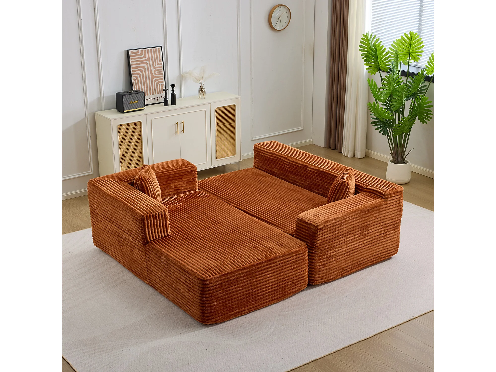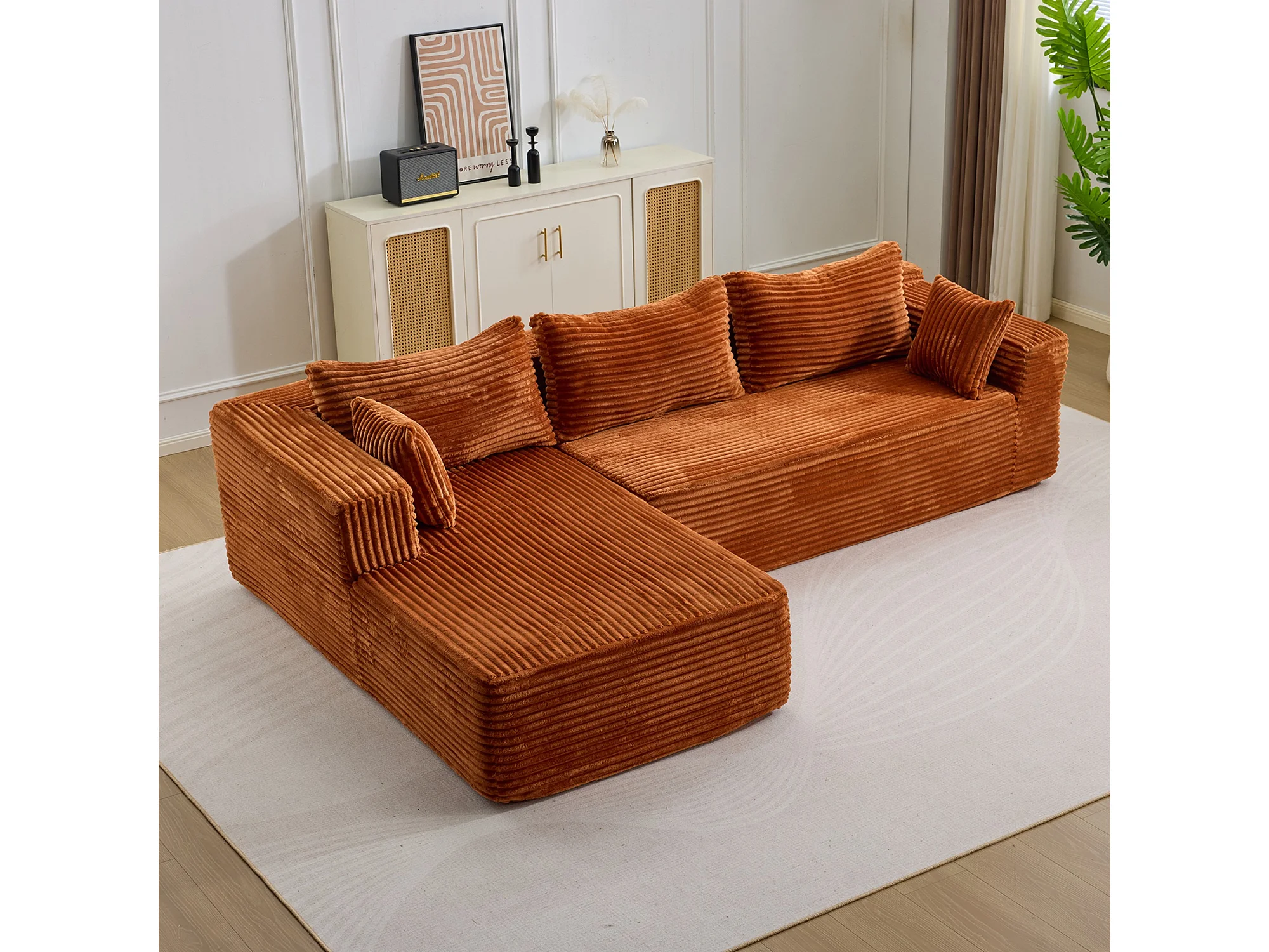 Ensemble de canapés modulaires en velours côtelé, ensemble de canapés en L sur pied, prêt à assembler, adapté aux salons, marron