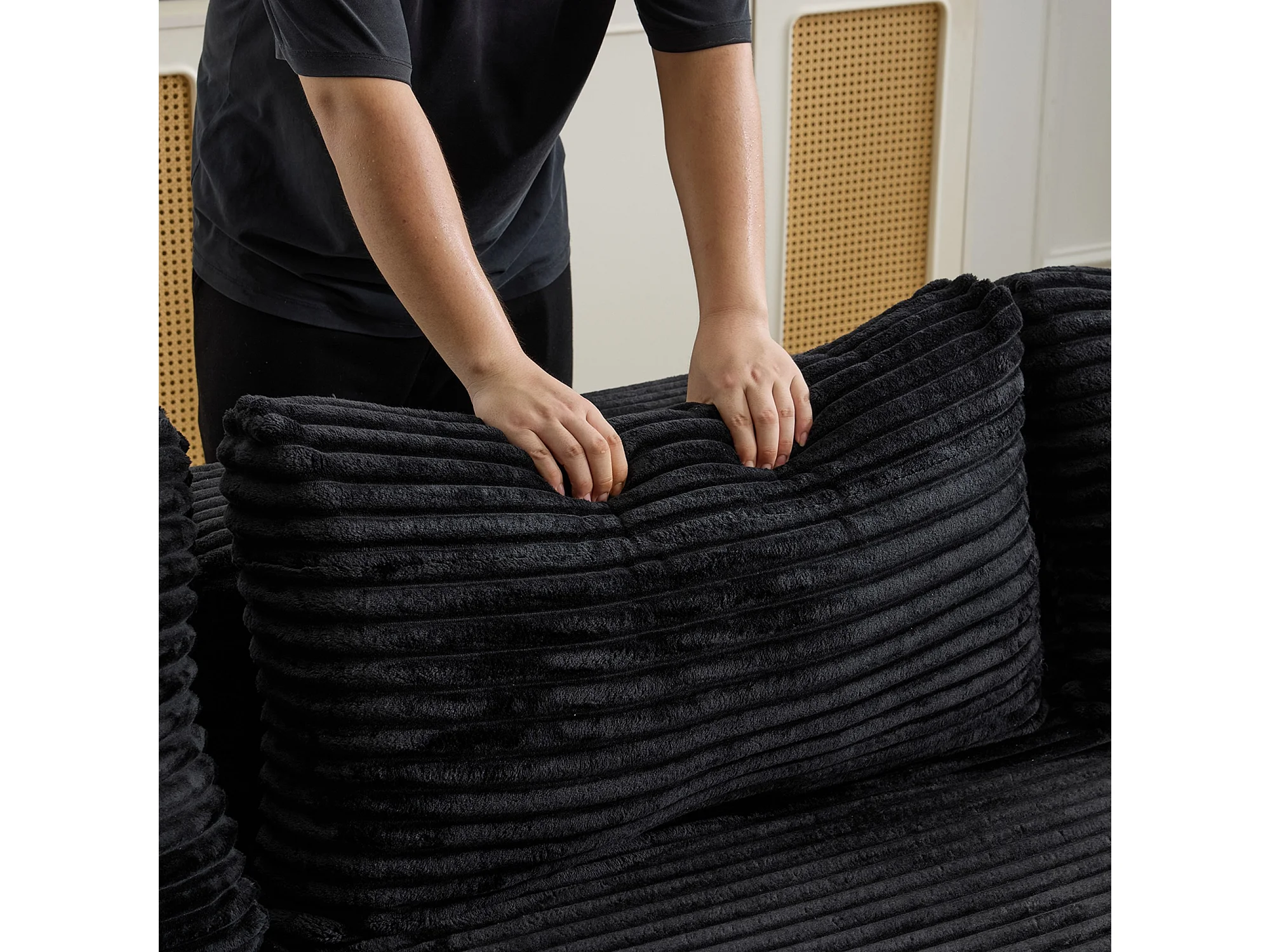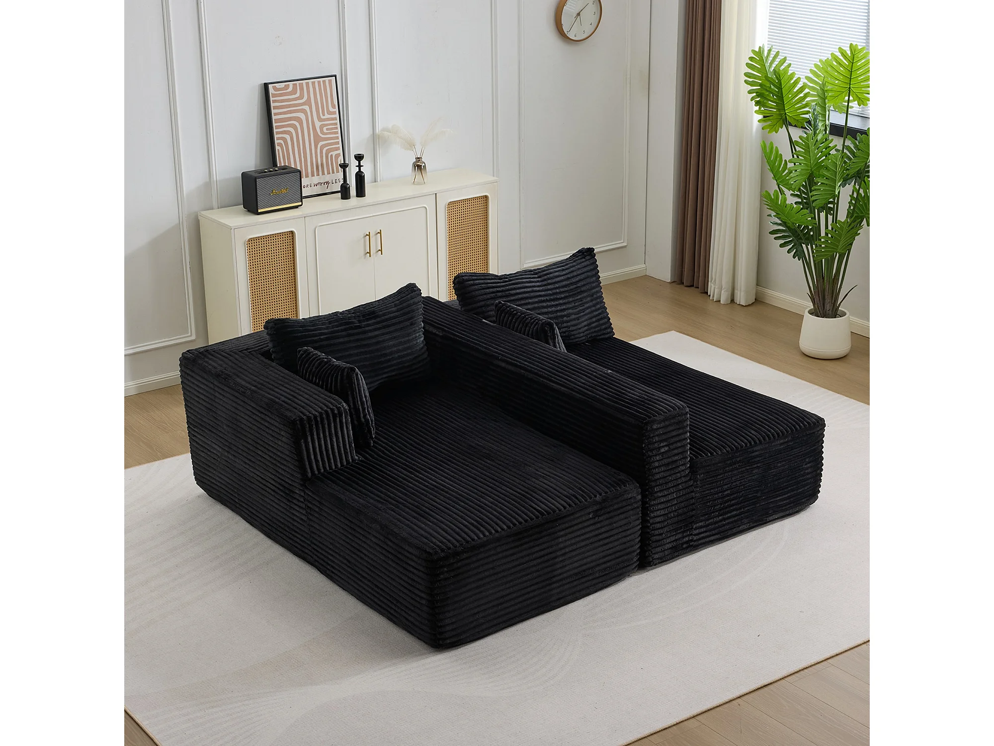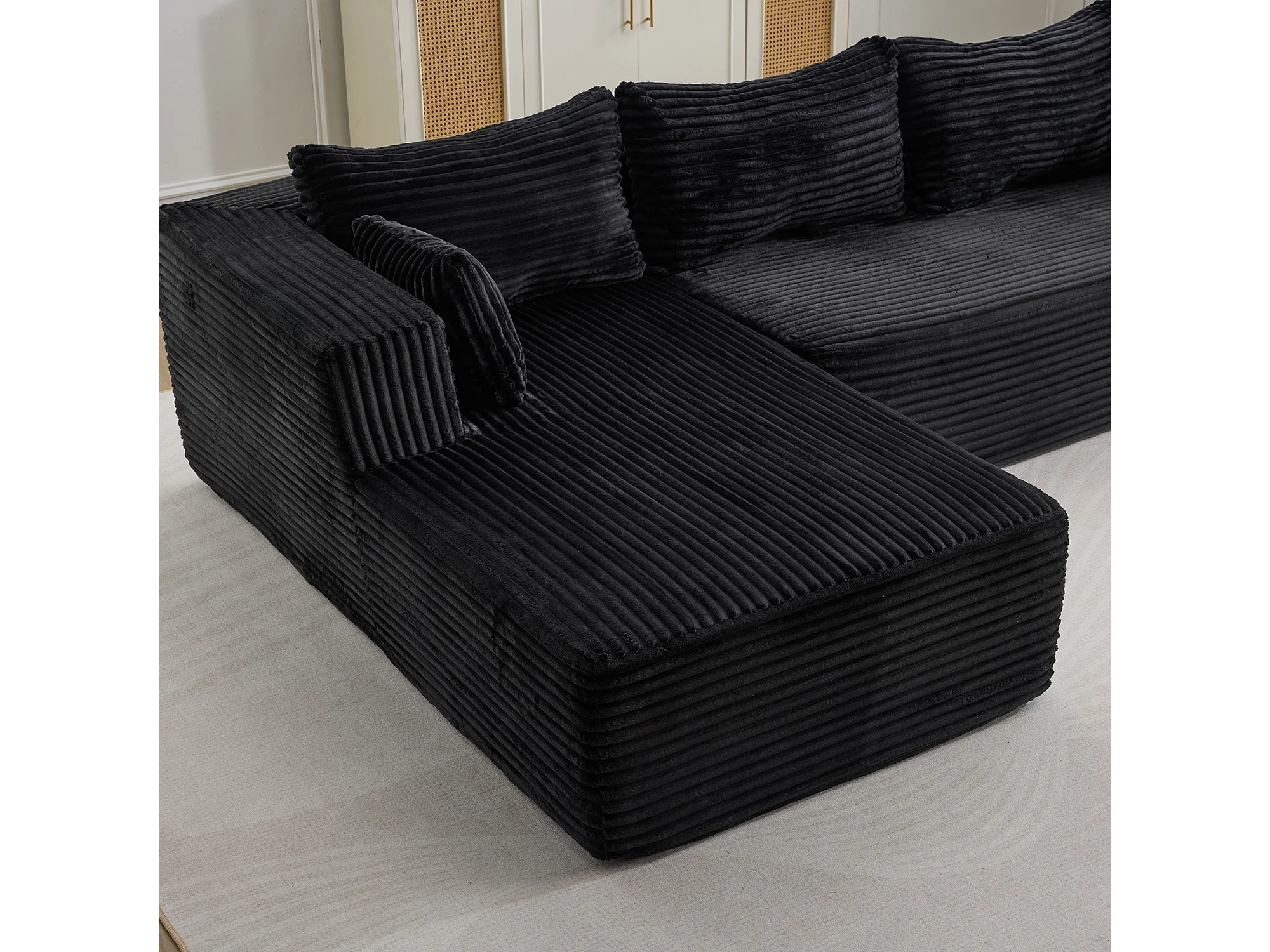 Ensemble de canapés modulaires en velours côtelé, ensemble de canapés en L sur pied, prêt à assembler, adapté aux salons, noir