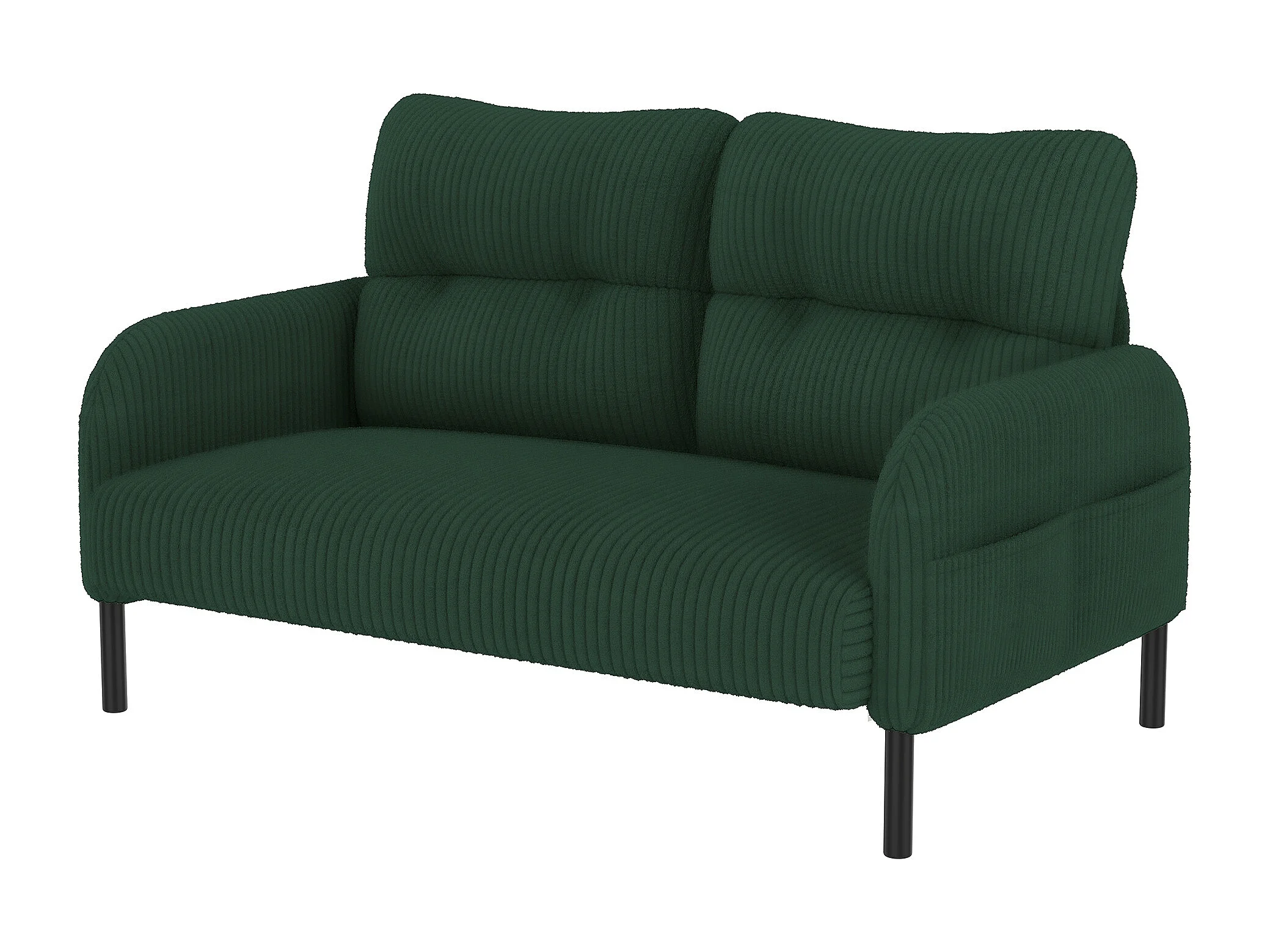 Ensemble de canapés vert - Canapé 2 places et canapé 1 place - avec repose-pieds et poches latérales - velours côtelé