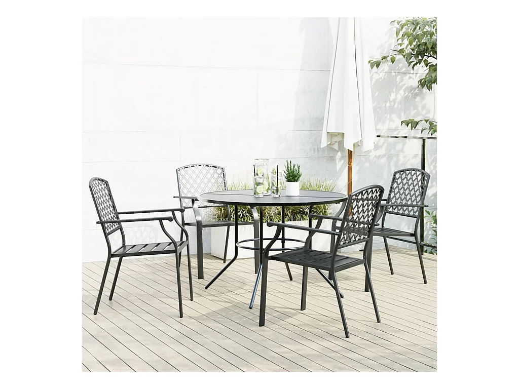 Ensemble de chaises de jardin empilables 5 pièces anthracite