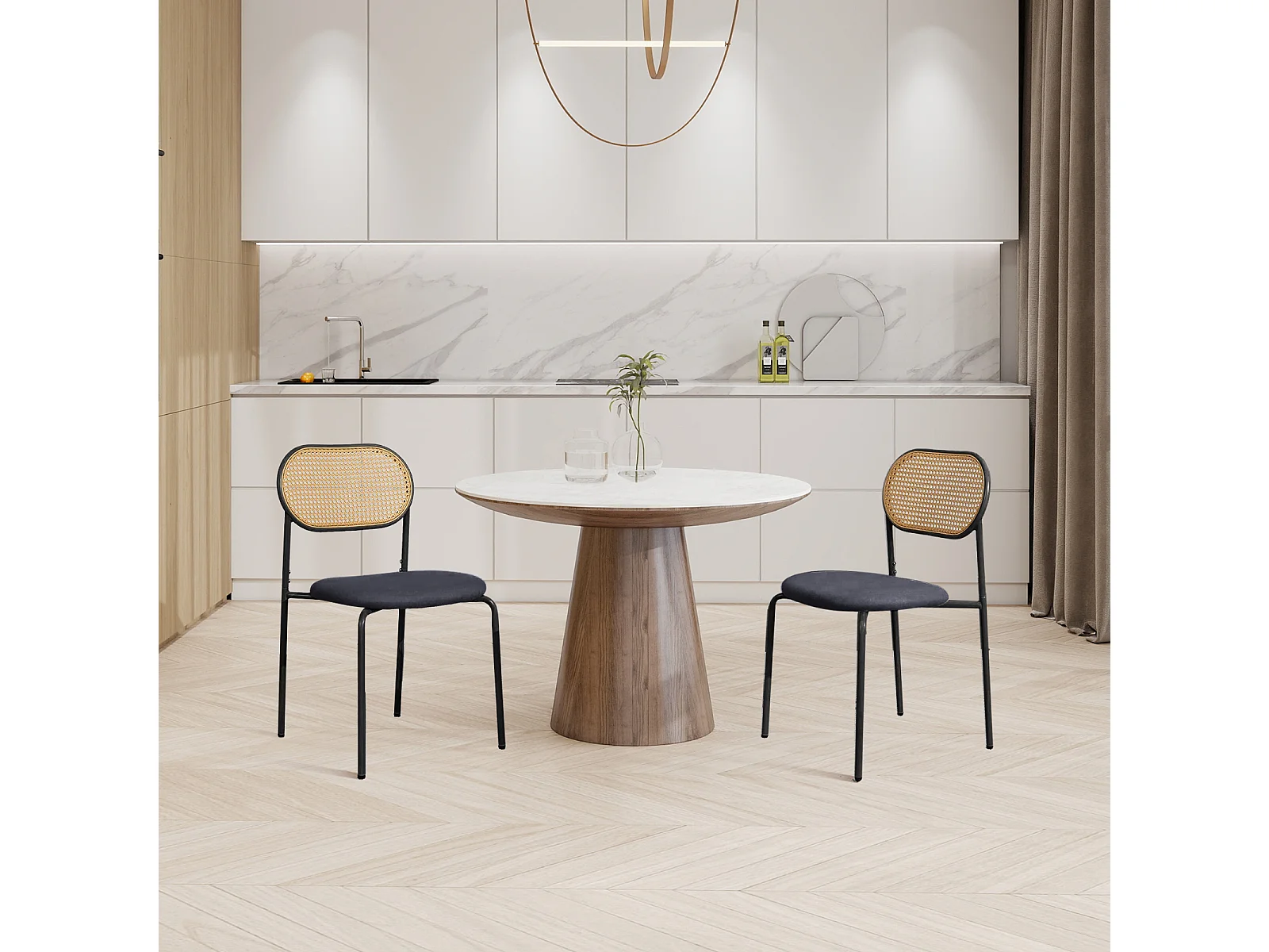 Ensemble de chaises de salle à manger 2pcs - Chaise de cuisine noire avec dossier en rattan - Chaises rembourrées pour salle à manger Salon