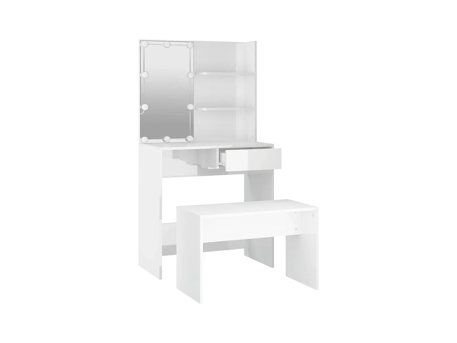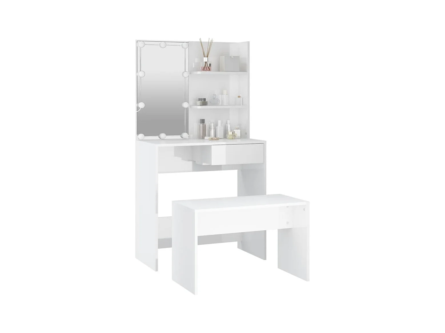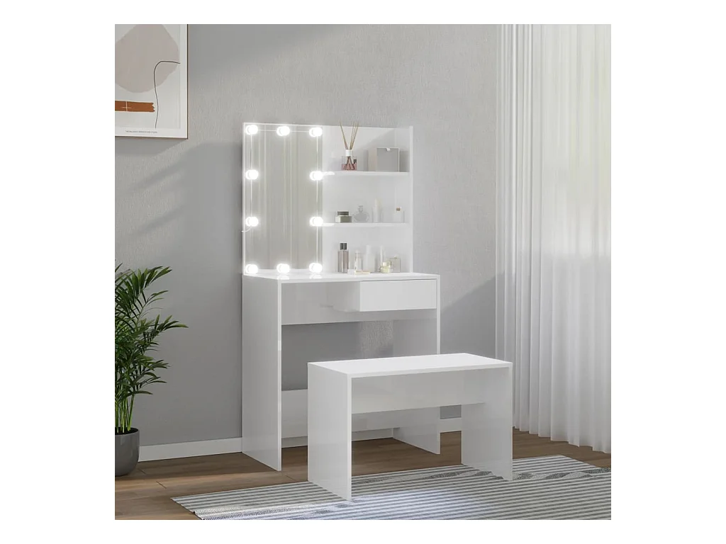 Ensemble de coiffeuse avec LED Blanc brillant Bois d'ingénierie