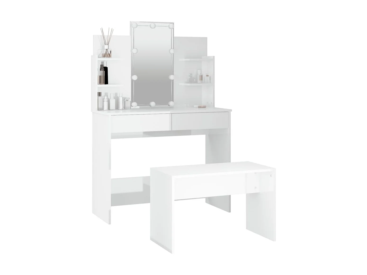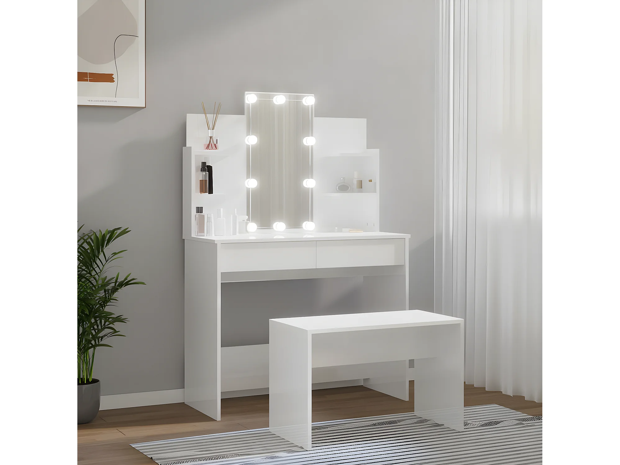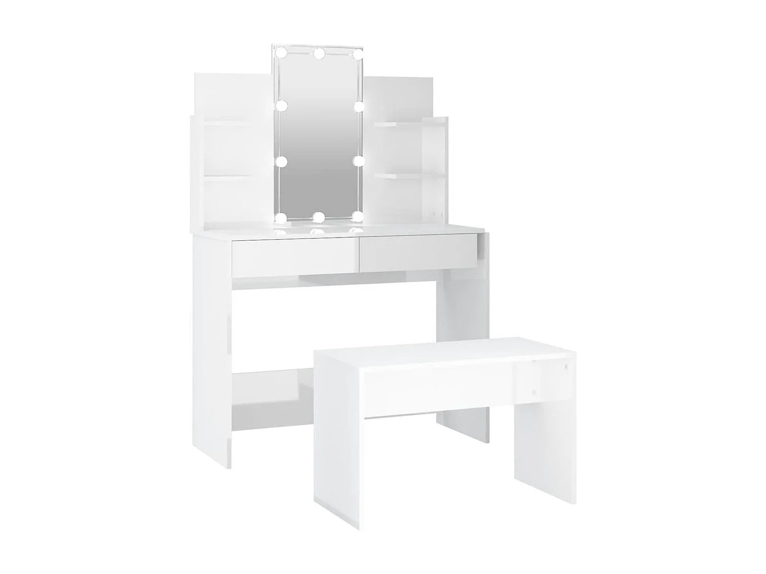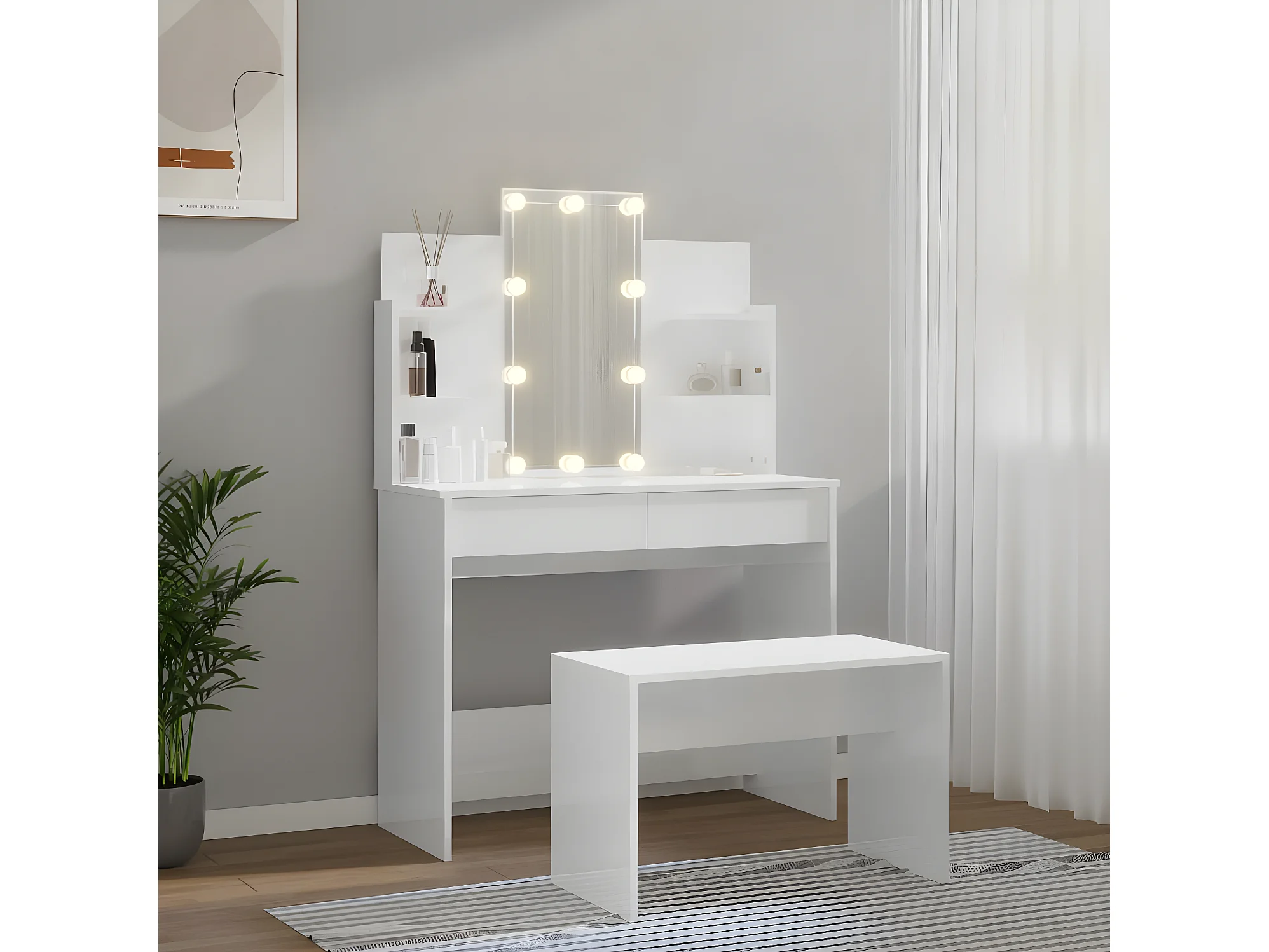Ensemble de coiffeuse avec LED Blanc brillant Bois d'ingénierie OFR58320 BonneVie Meuble