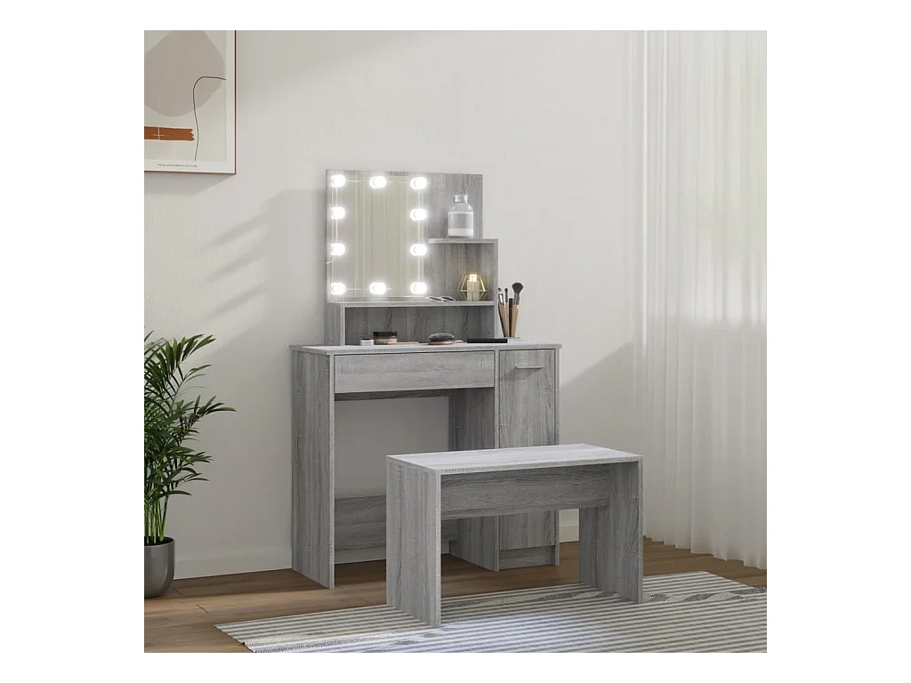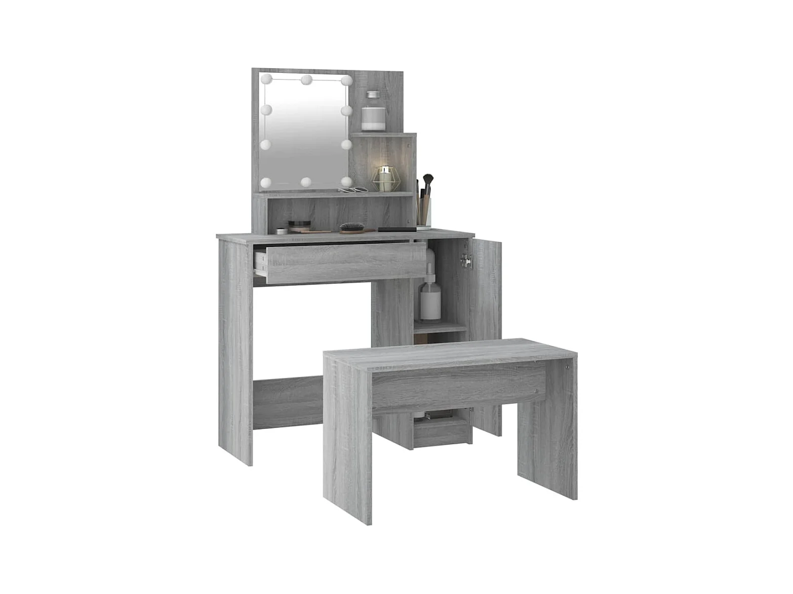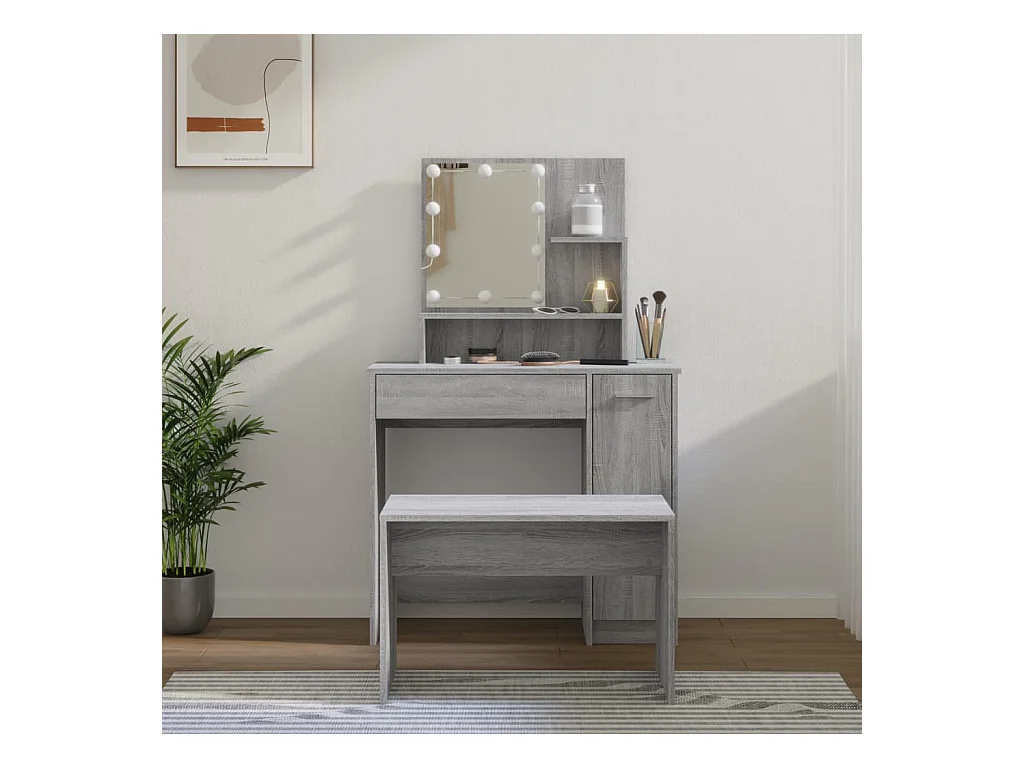 Ensemble de coiffeuse avec LED Sonoma gris Bois d'ingénierie