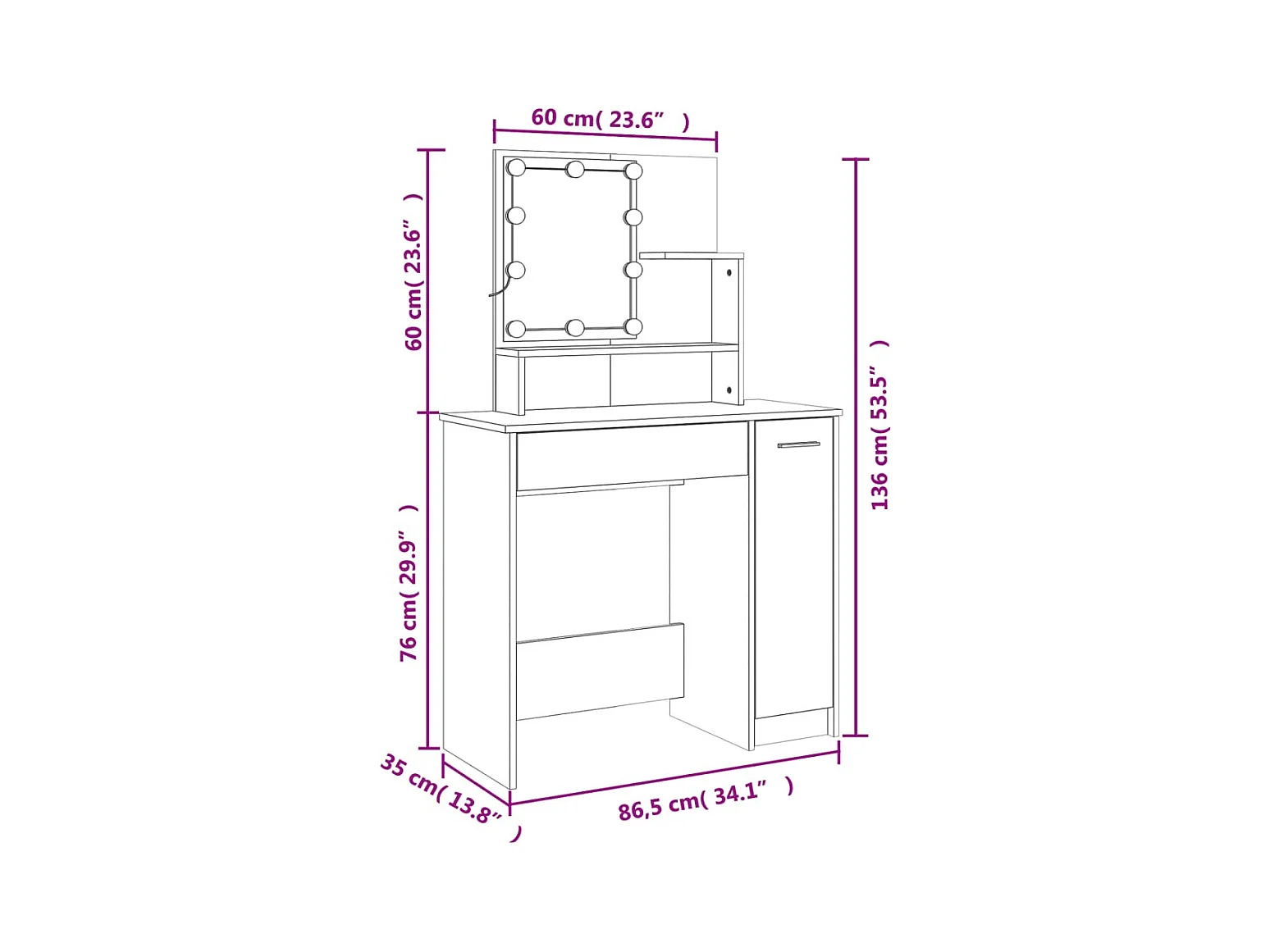 Coiffeuse avec LED Sonoma gris 86,5x35x136 cm FR228413