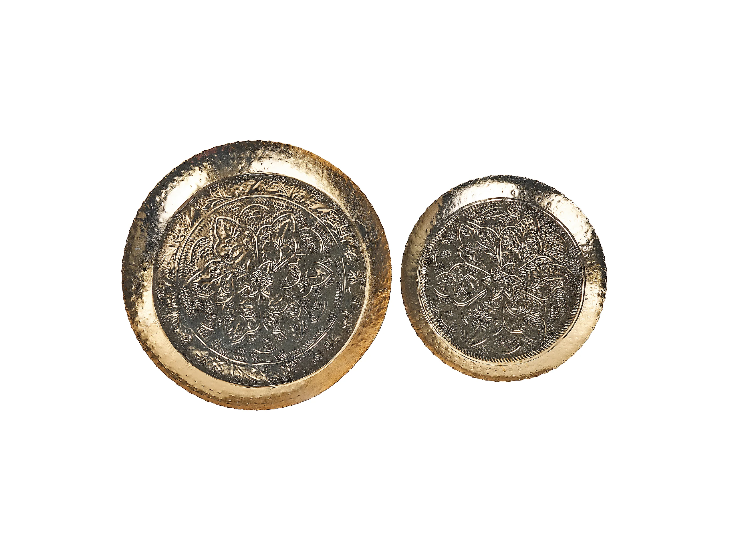 Plateaux ronds en métal finition doré antique (Lot de 2)