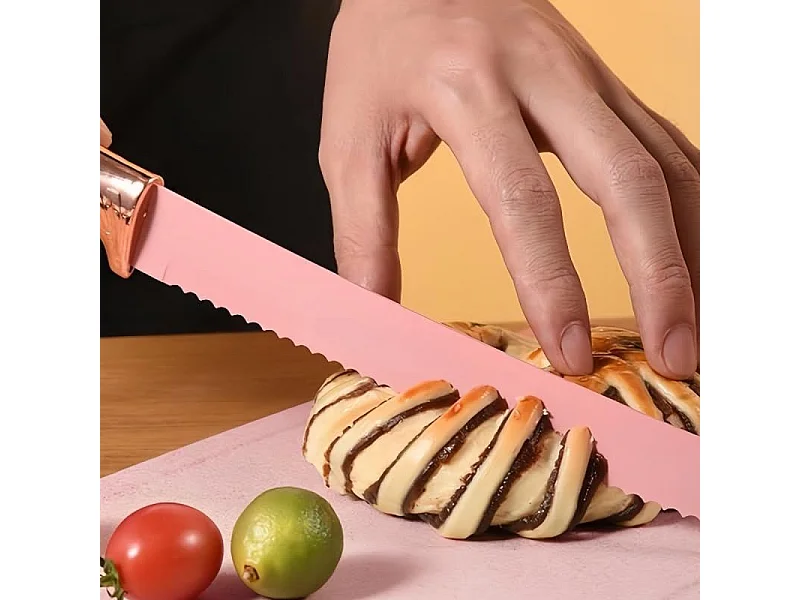 Ensemble de couteaux 5 pièces avec ciseaux et support Rose Royalty Line RLNC07P