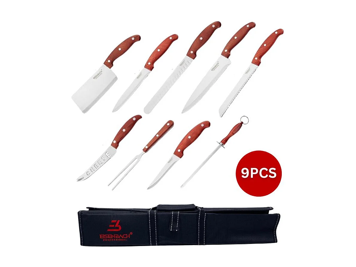Ensemble de Couteaux Professionnels 9 Pièces avec Sac de Transport Eisenbach LH-049