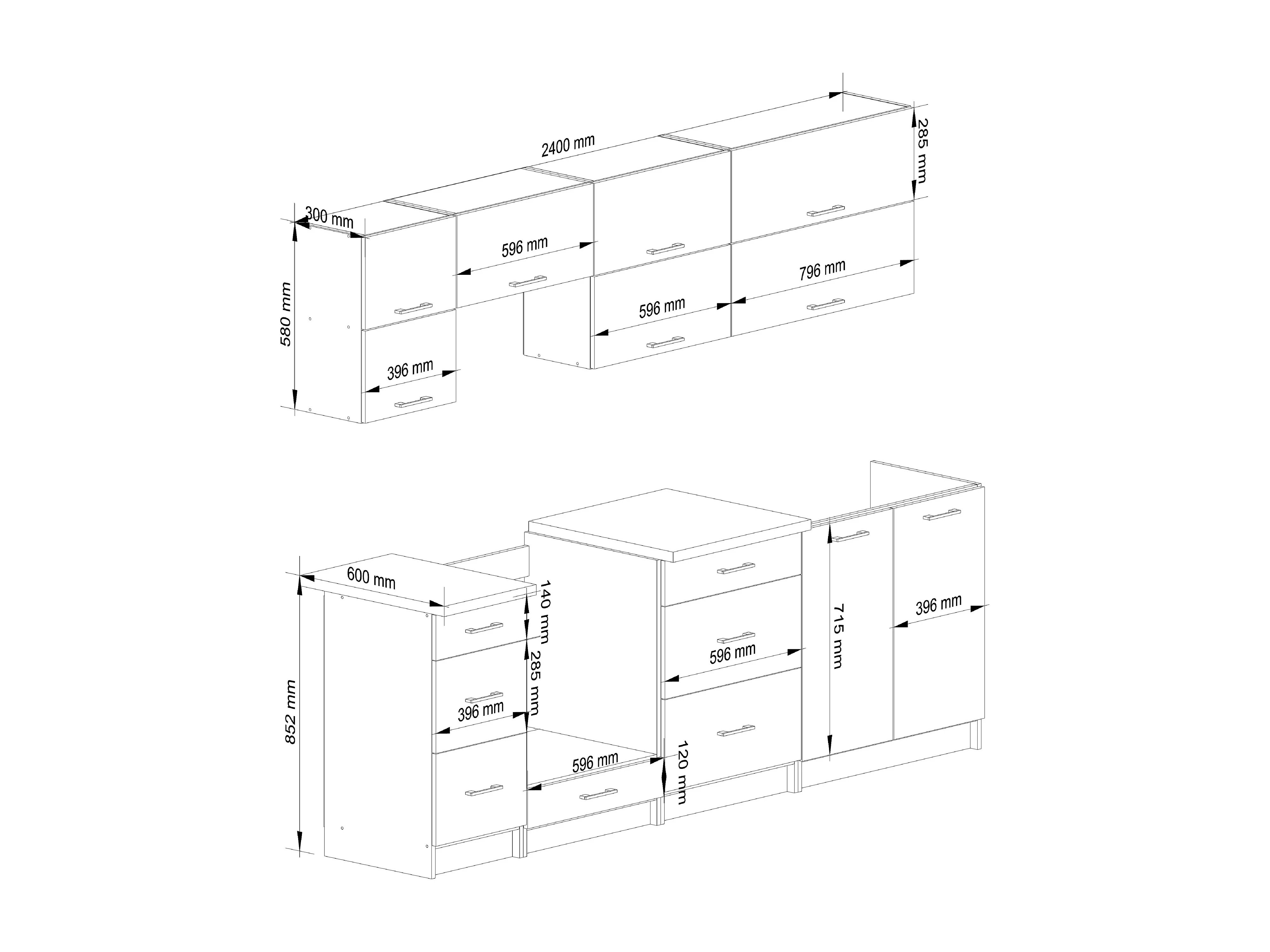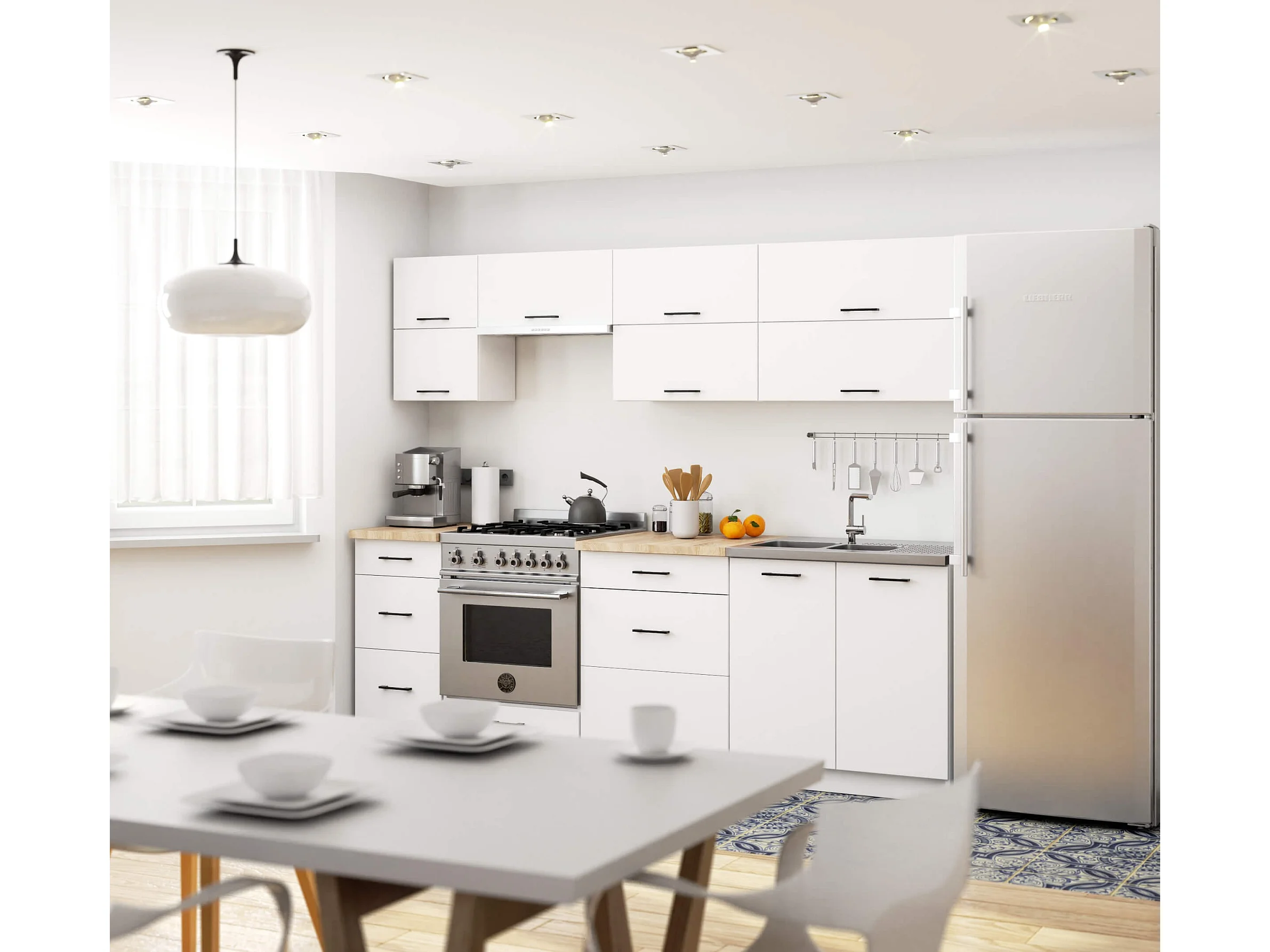 Ensemble De Cuisine AKORD OLIWIA G2 Blanc 240 cm 10 portes 6 tiroirs façade Blanche 240x46x203 cm