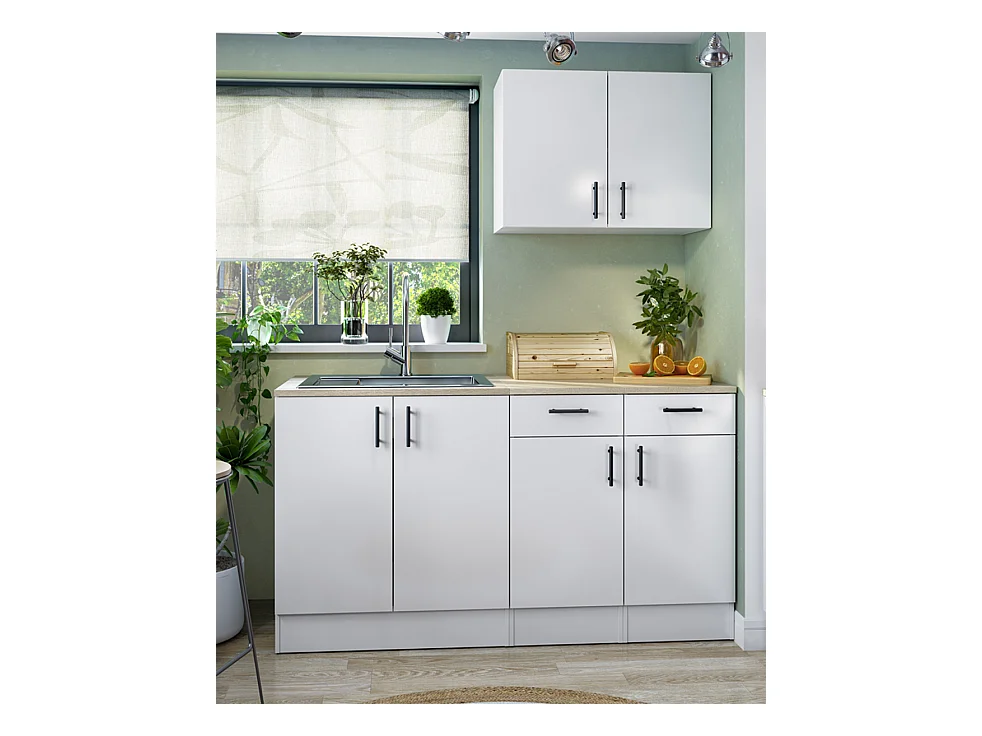 Ensemble de cuisine avec 4 éléments coloris blanc brillant/chêne canadien