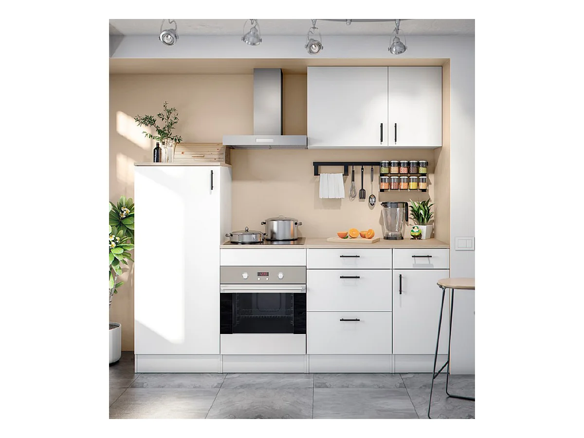 Ensemble de cuisine composé de 6 éléments colors blanc brillant/chêne canadien