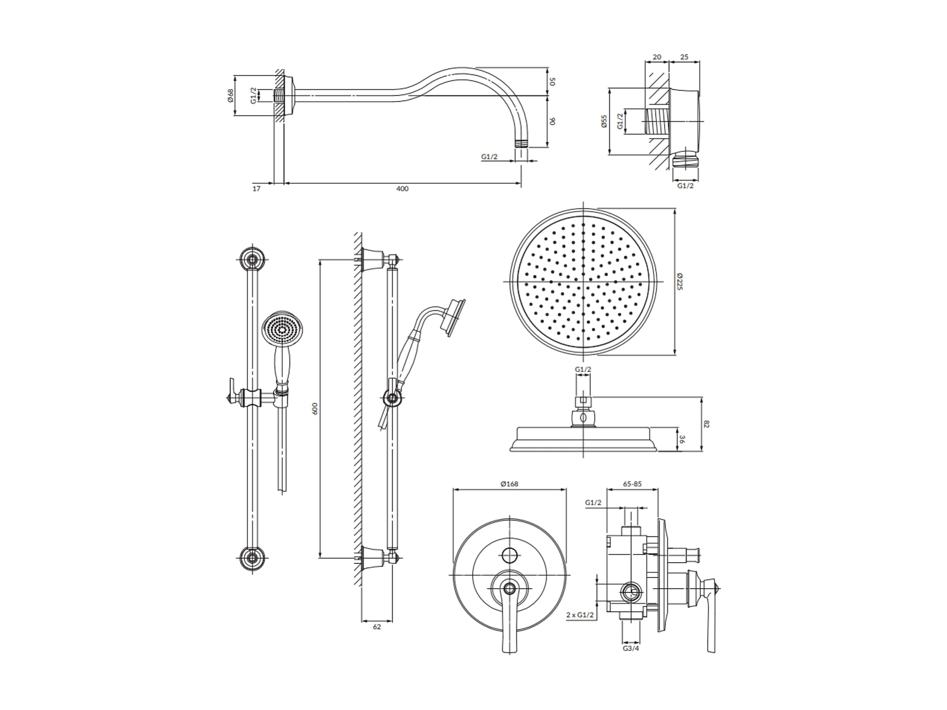 Ensemble de douche en ARMANCE encastrable or