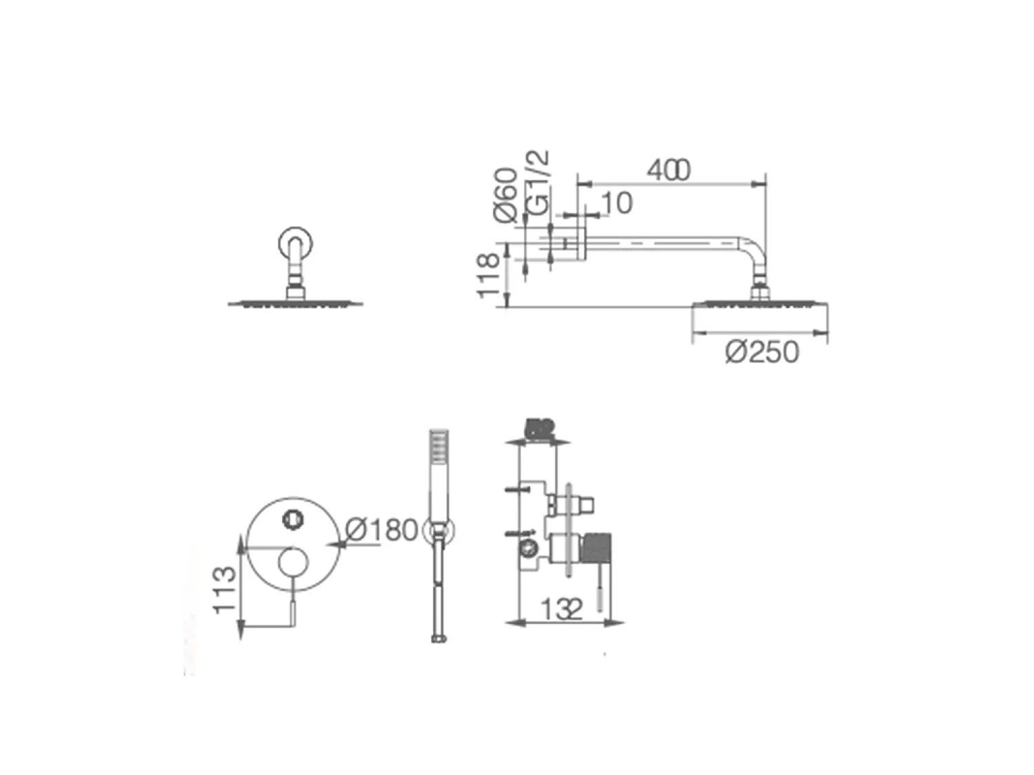 Ensemble de douche encastré IMEX LINE GPD038/BGM Black Gun Métal Cartouche céramique de 35 mm