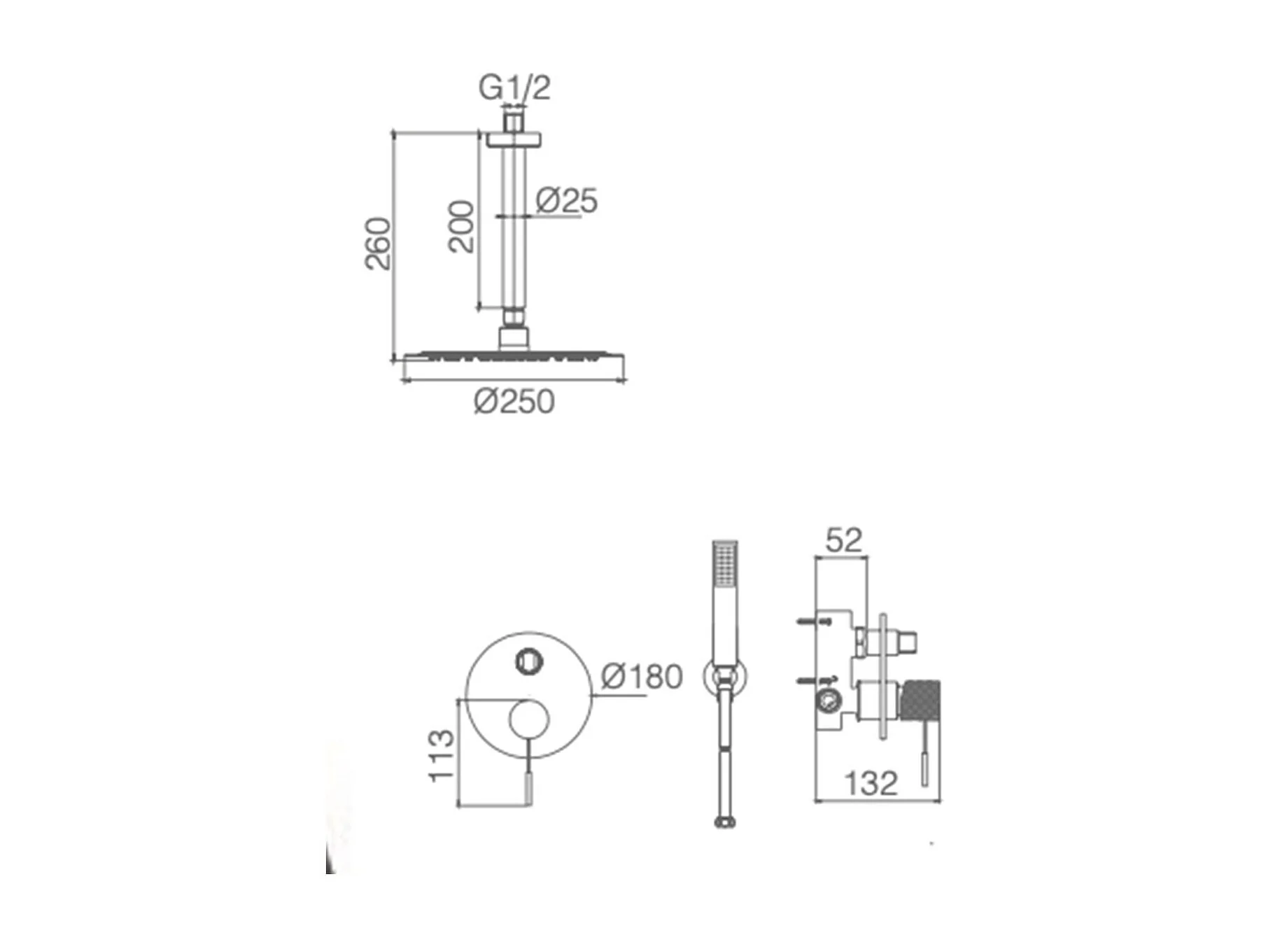 Colonne de Douche Encastrée avec Mitigeur Mécanique or brossé anti-calcaire - Design Moderne - LINE IMEX