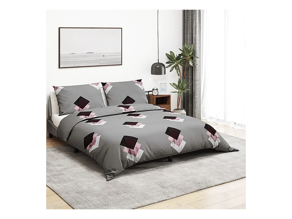 Ensemble de housse de couette Gris 200x200 Coton