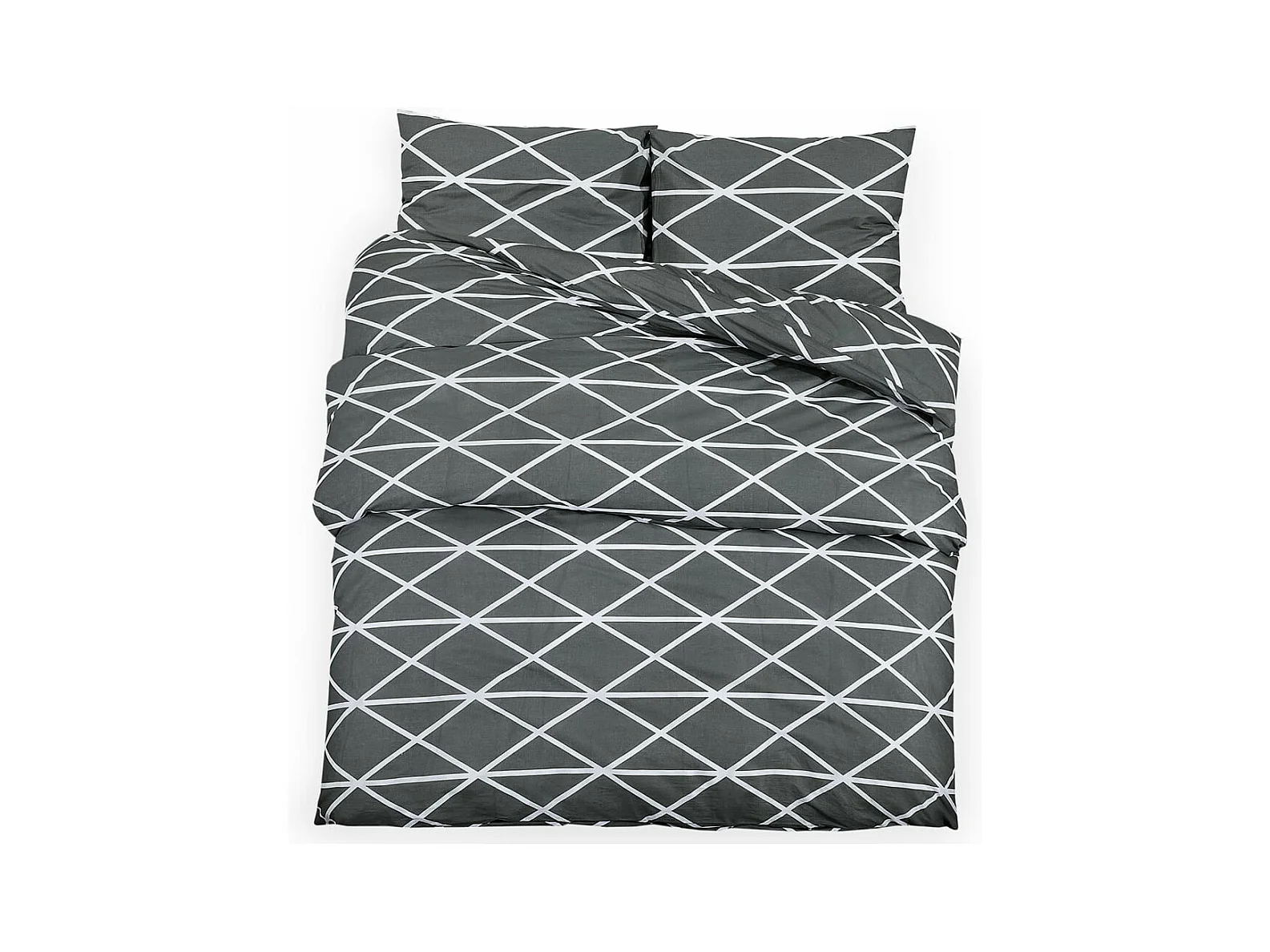 Housse de couette + taie(s) oreiller "Lufian gris" 100% coton imprimé.