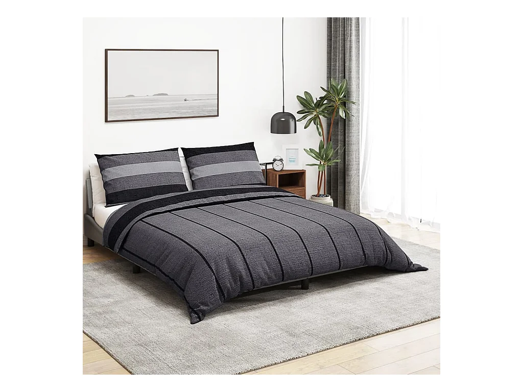 Ensemble de housse de couette | Parure de lit gris foncé 140x200 cm Coton