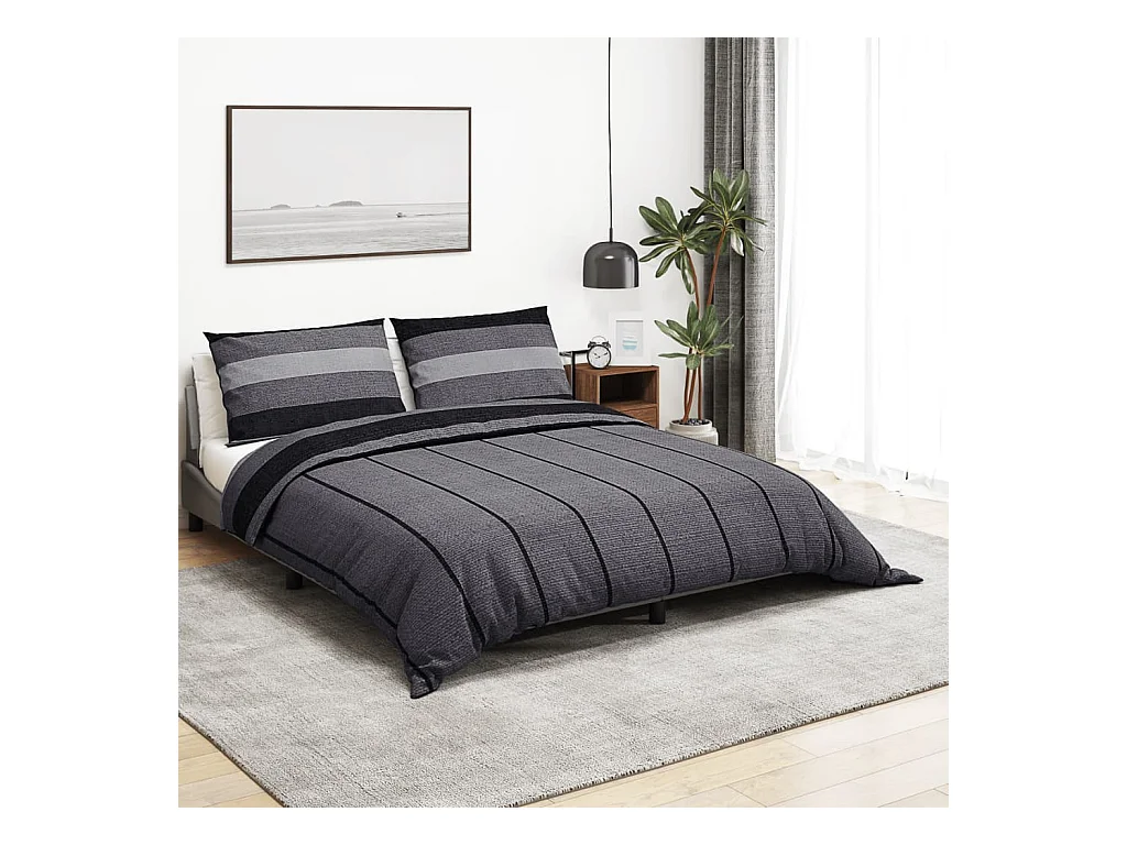 Ensemble de housse de couette | Parure de lit gris foncé 220x240 cm Coton