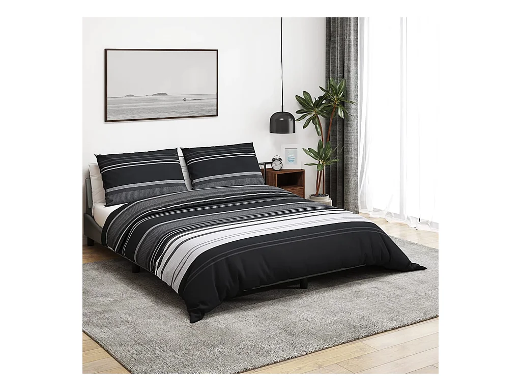 Ensemble de housse de couette | Parure de lit noir et blanc 200x200 cm Coton