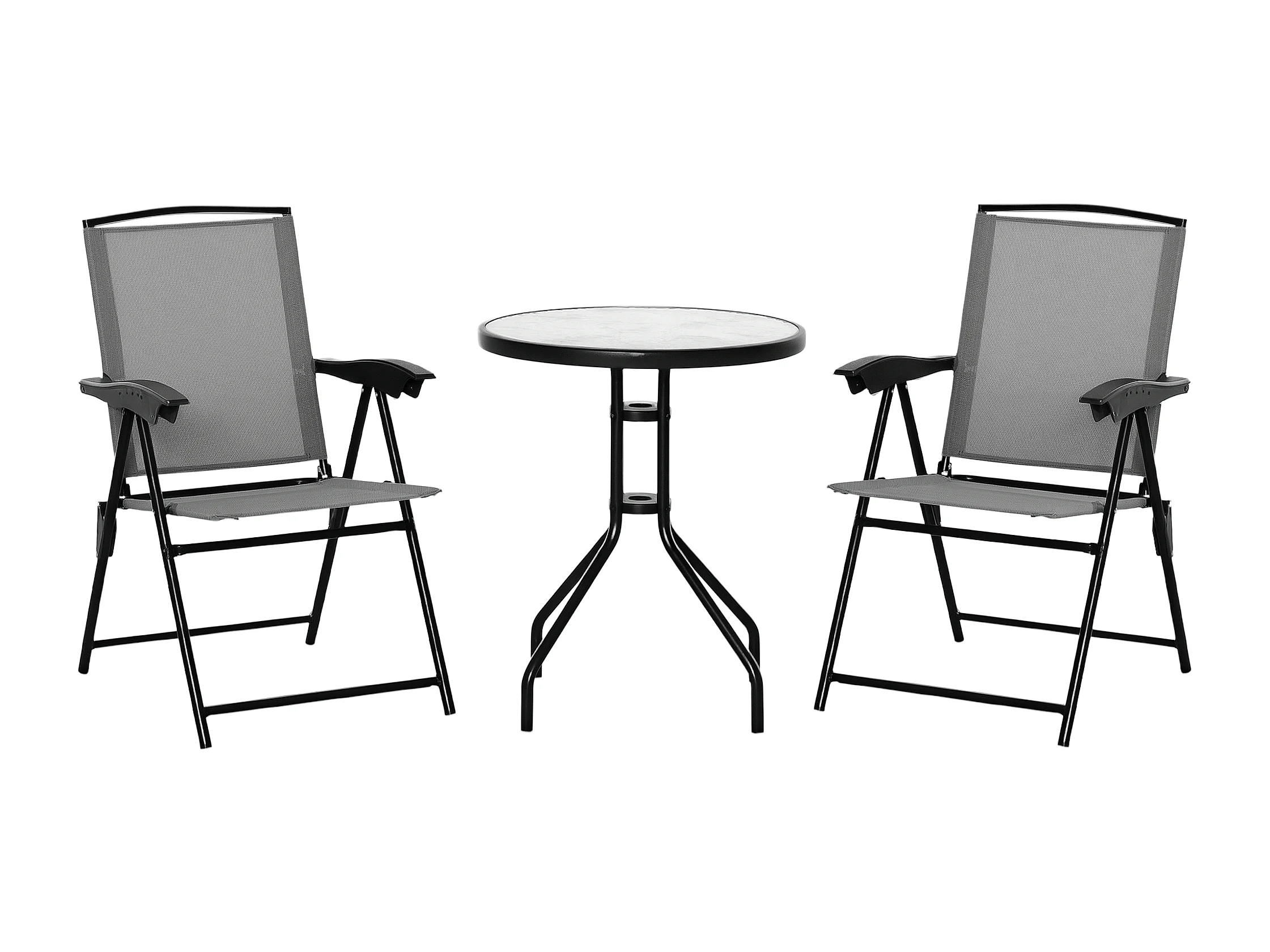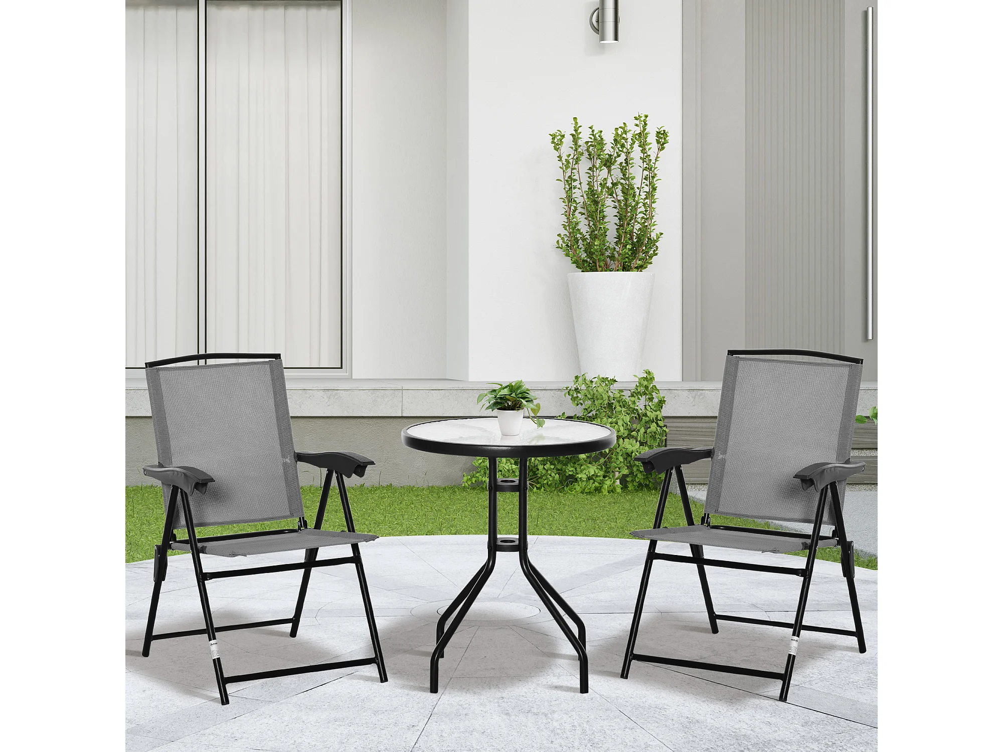 Ensemble de jardin 3 pièces 2 chaises inclinables multi-positions pliables + table ronde verre trempé métal époxy textilène gris