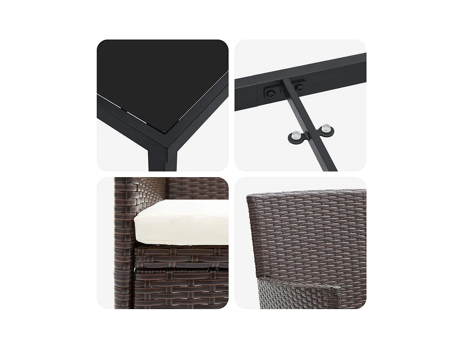 Ensemble de Jardin 5 Pièces Marron Rotin Poly