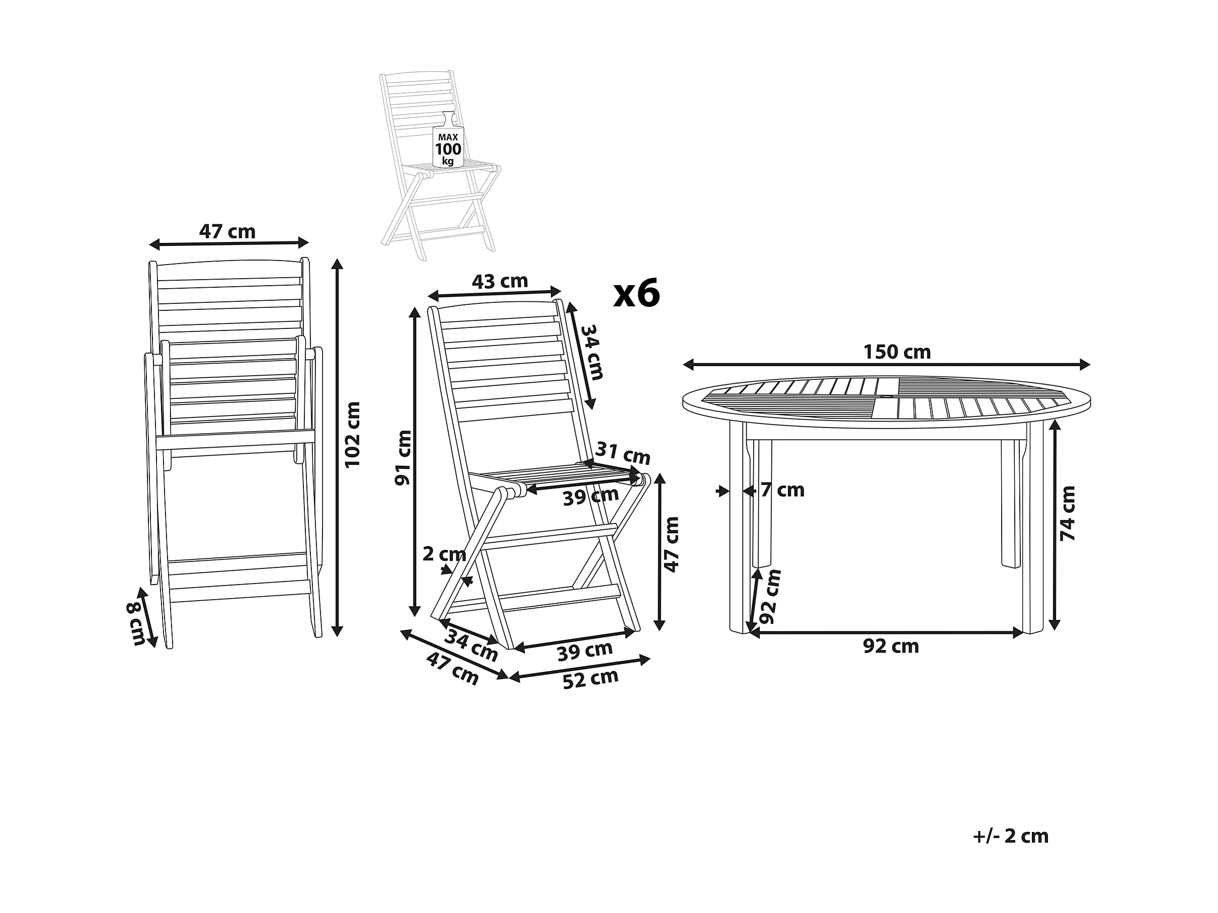 Salle à manger de jardin 6 places TOLVE Acacia Marron