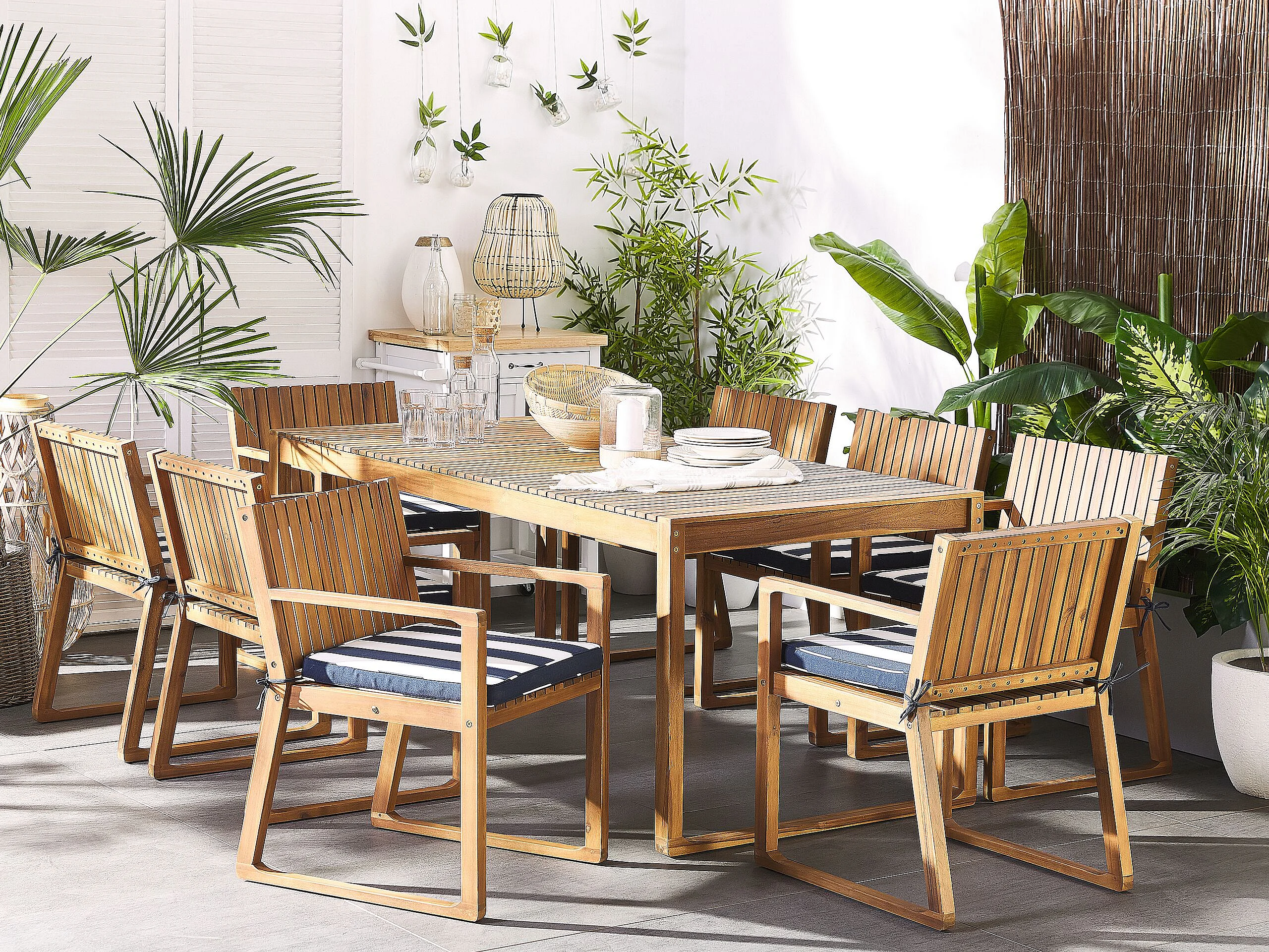 Salle à manger de jardin 8 places SASSARI avec coussins Acacia Bleu marine