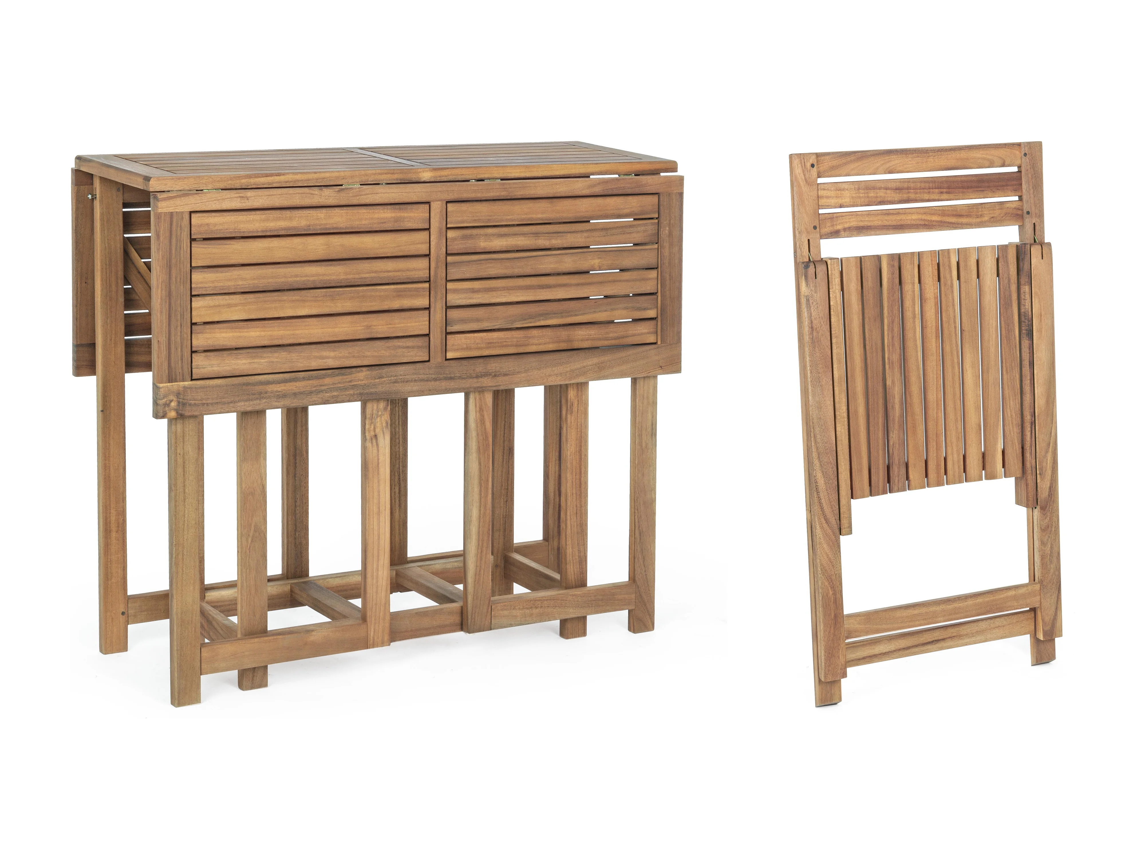 Ensemble de jardin NOEMI – Table pliante modulable + 4 chaises pliantes en acacia huilé