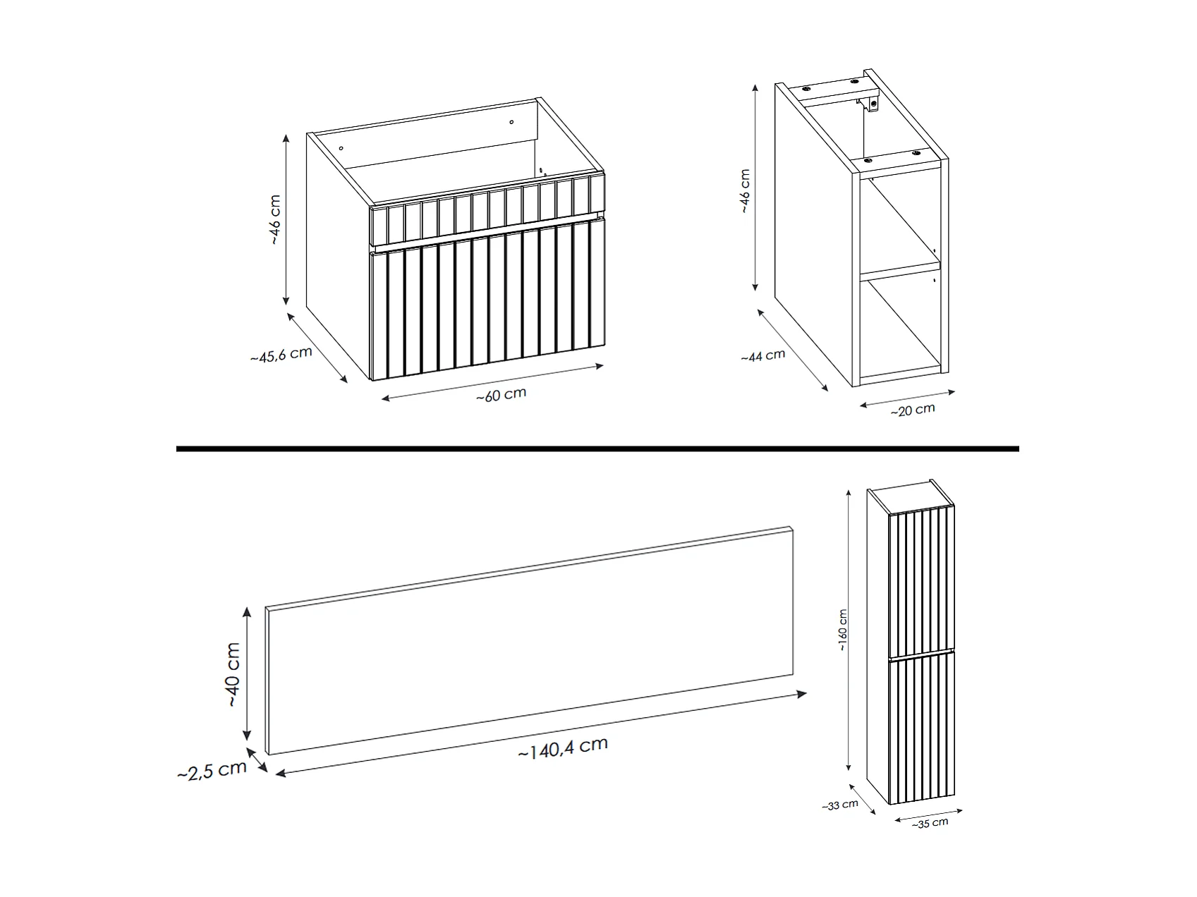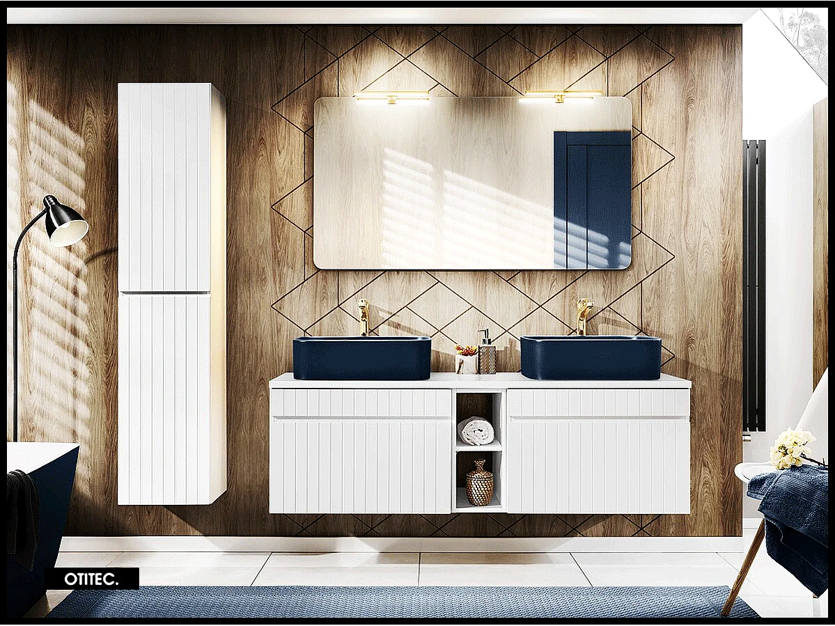 Ensemble de meuble de salle de bain - 140 cm - avec 2 vasques à poser - avec plan - avec colonne et Miroirs - 2 tiroirs - MINO