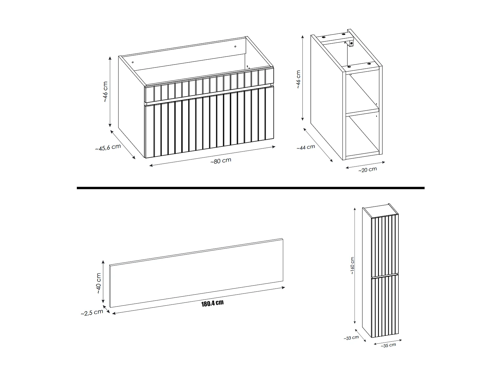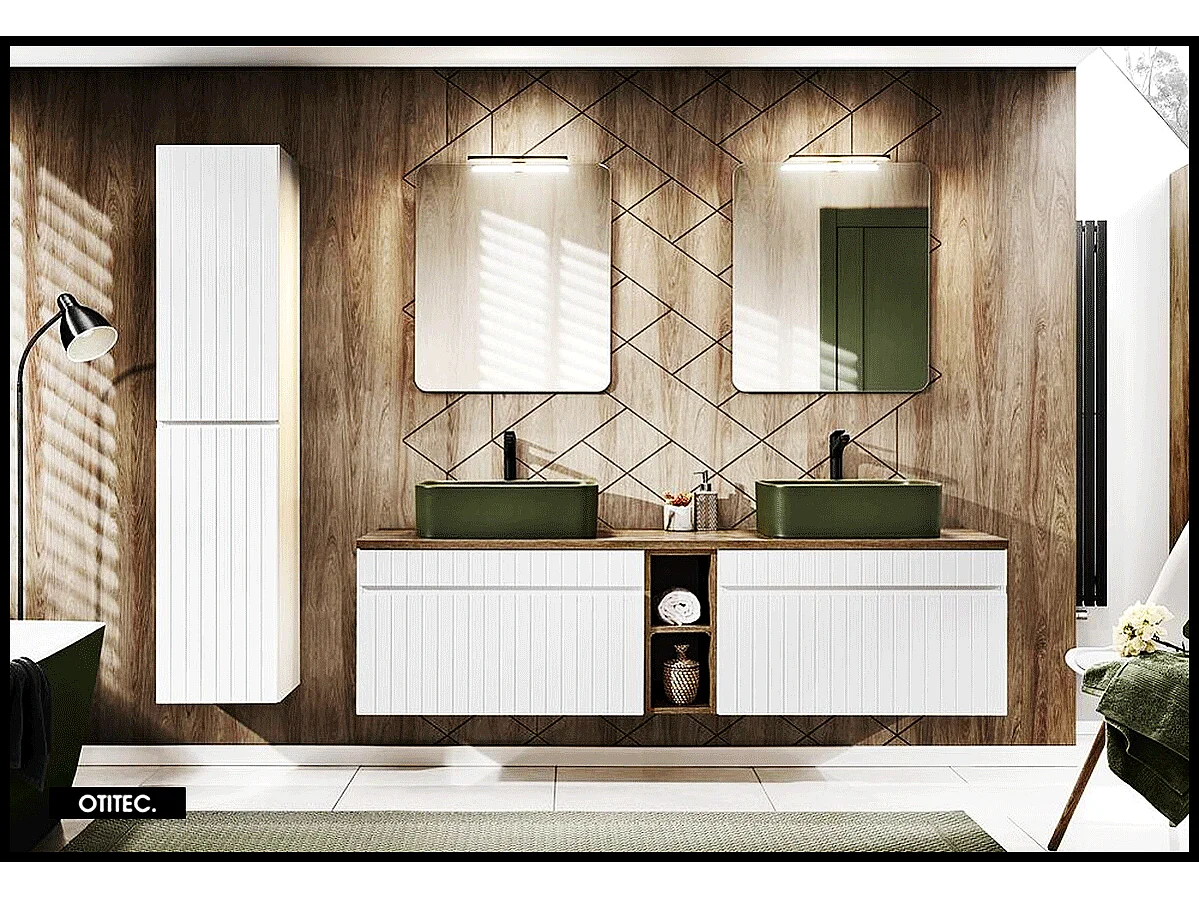 Ensemble de meuble de salle de bain - 180 cm - avec 2 vasques à poser - avec plan - avec colonne et Miroirs - 2 tiroirs - MINO