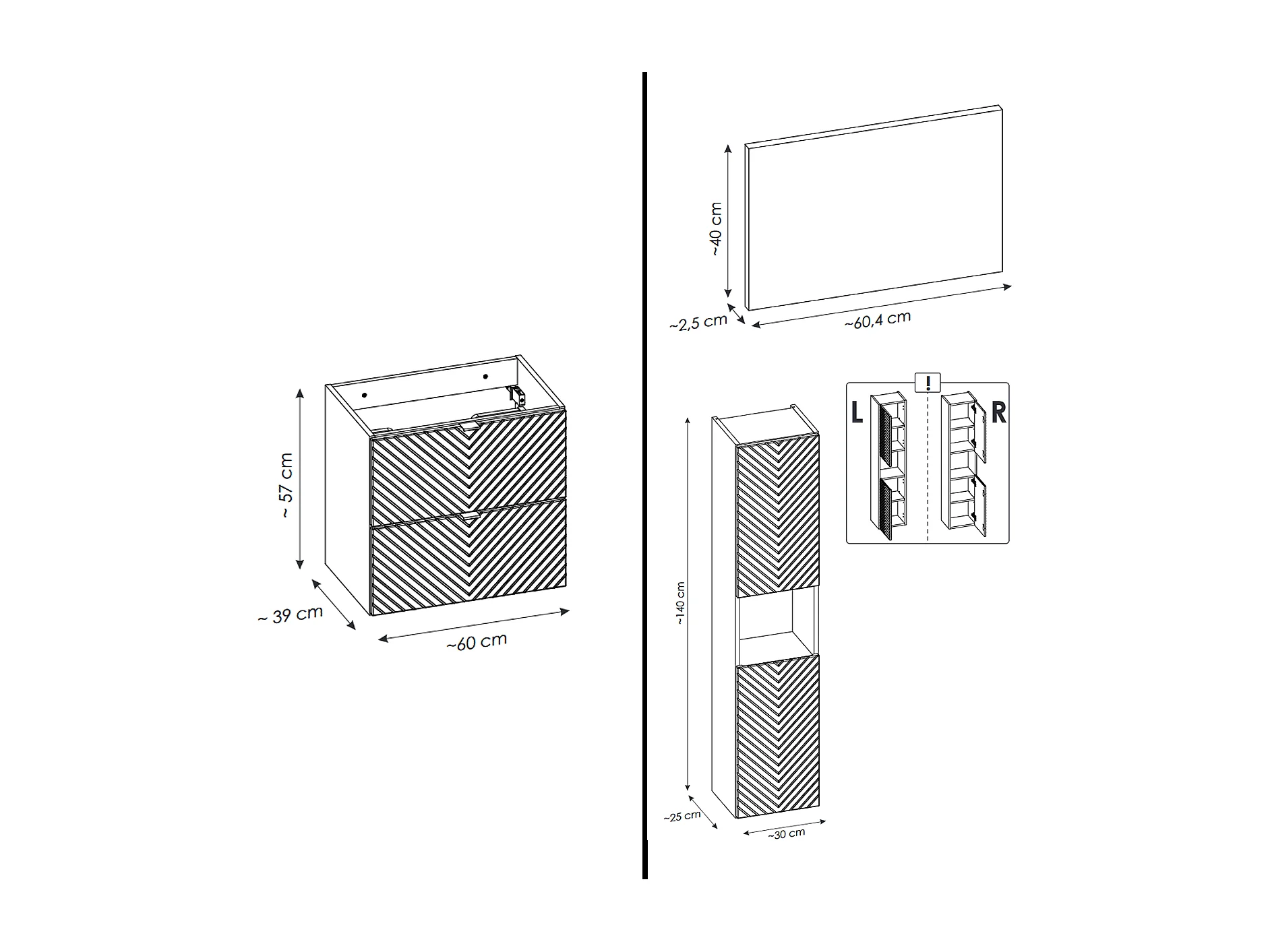 Ensemble de meuble de salle de bain - 60 cm - avec plan - avec colonne - 2 tiroirs - DANO