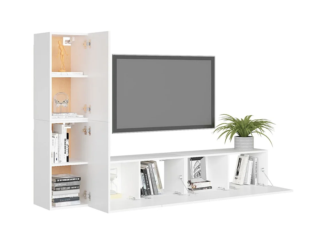 Ensemble de meuble TV 4 pcs Blanc Aggloméré