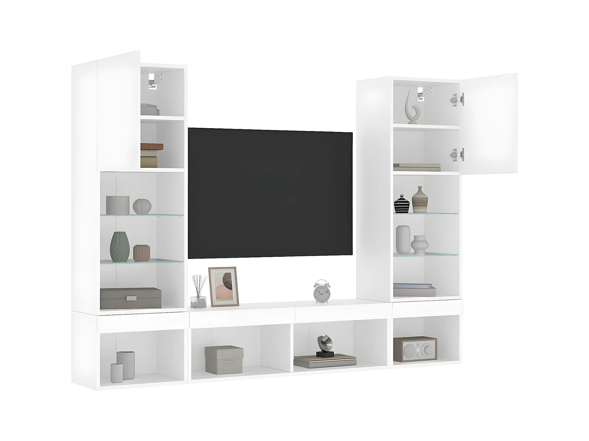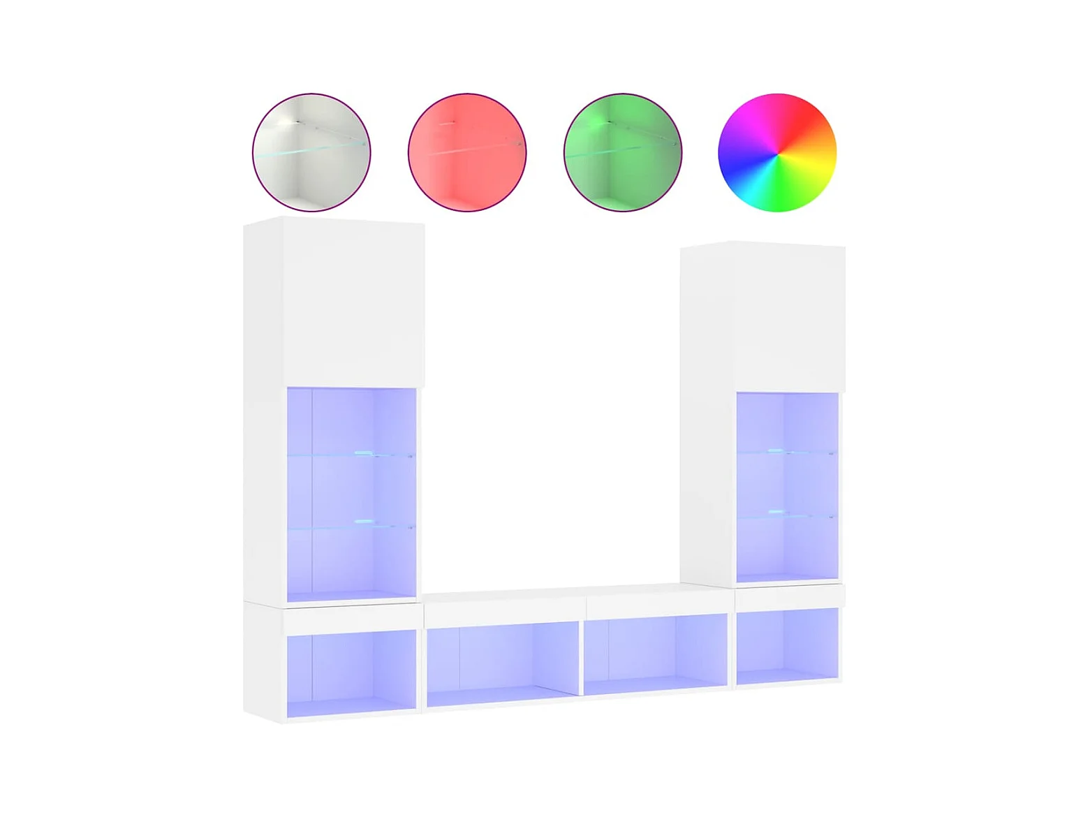 Ensemble de meuble TV avec LED 5 pcs blanc bois d'ingénierie WET4737