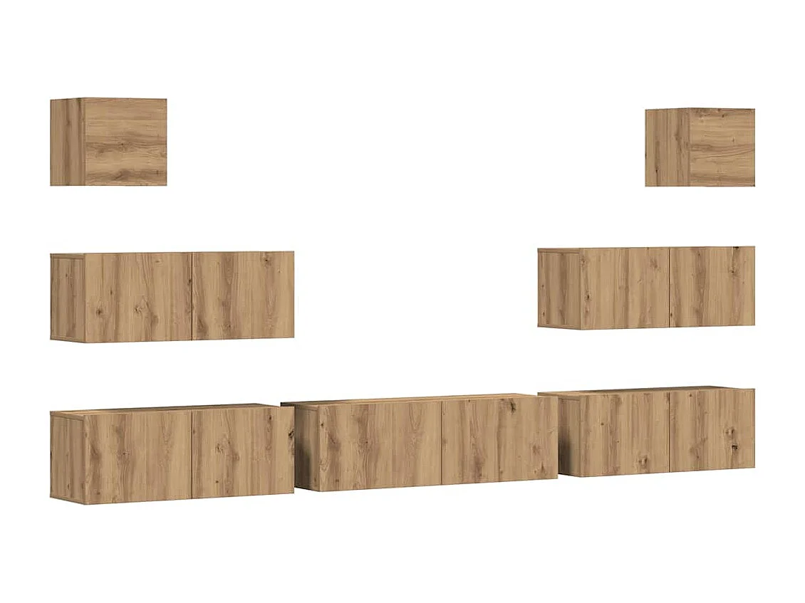Ensemble de meuble TV mural 7 pièces chêne artisanal