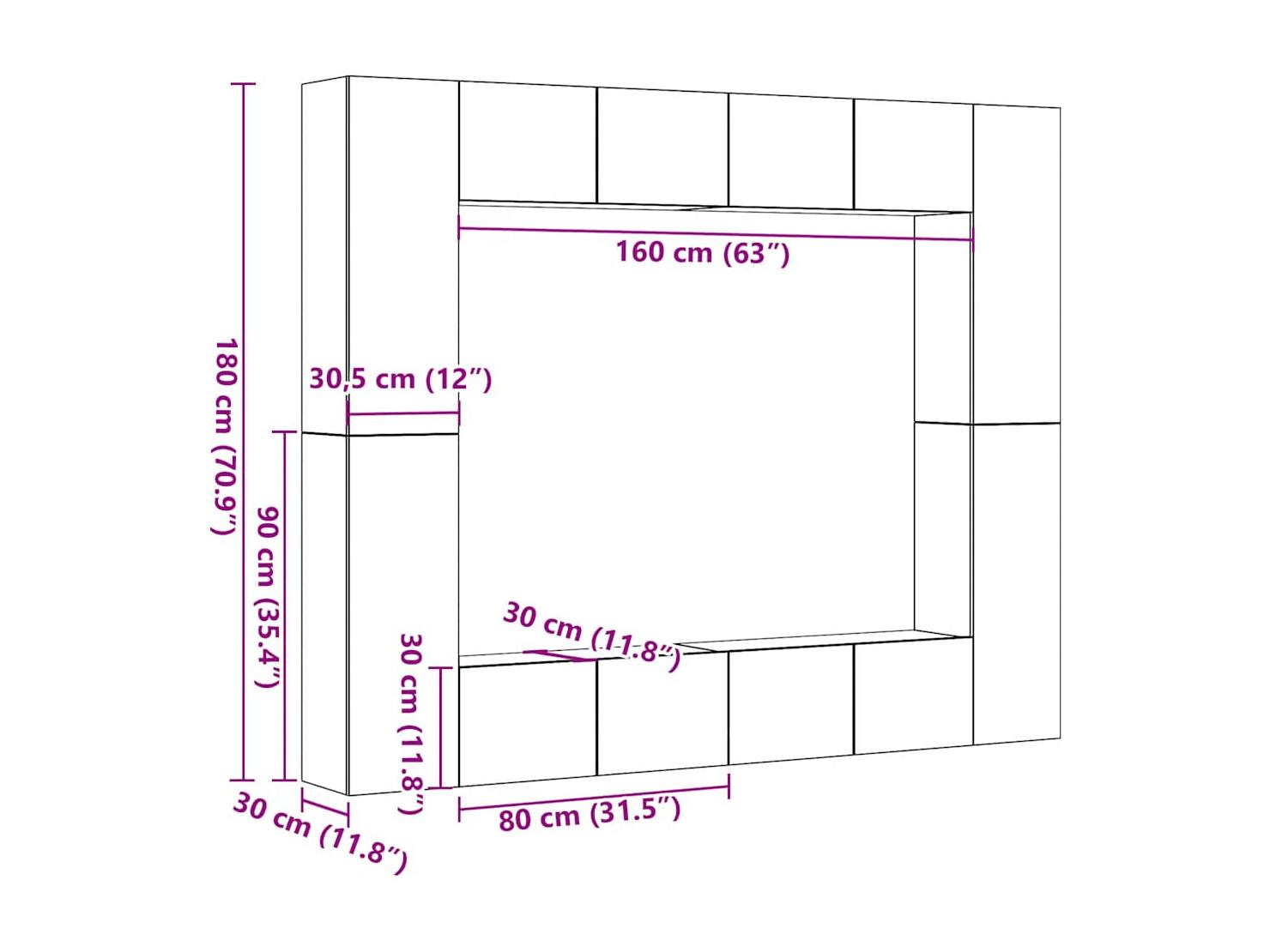Ensemble de meuble TV mural 8 pièces chêne artisanal